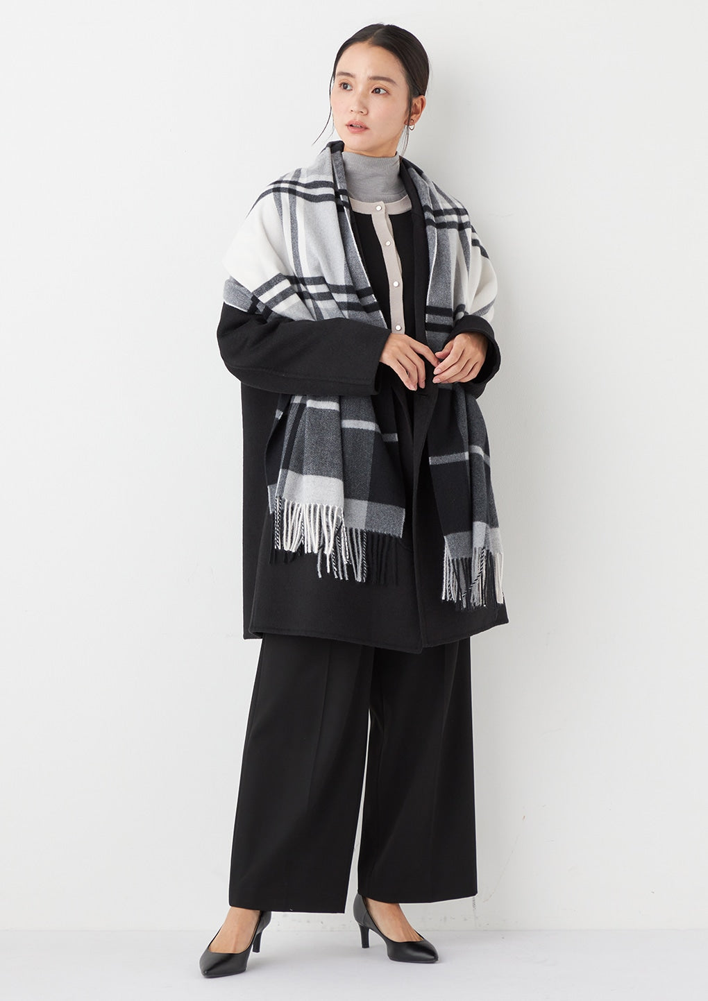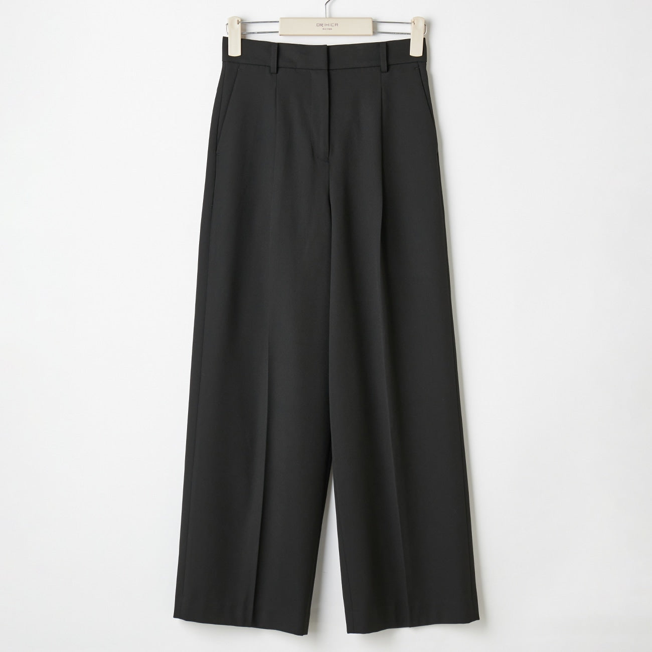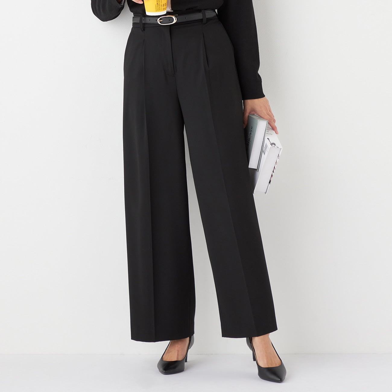- The high-waisted design visually lengthens the legs from the waist to the hem. The center press with straight pintucks emphasizes the center line, creating an additional leg-lengthening effect.