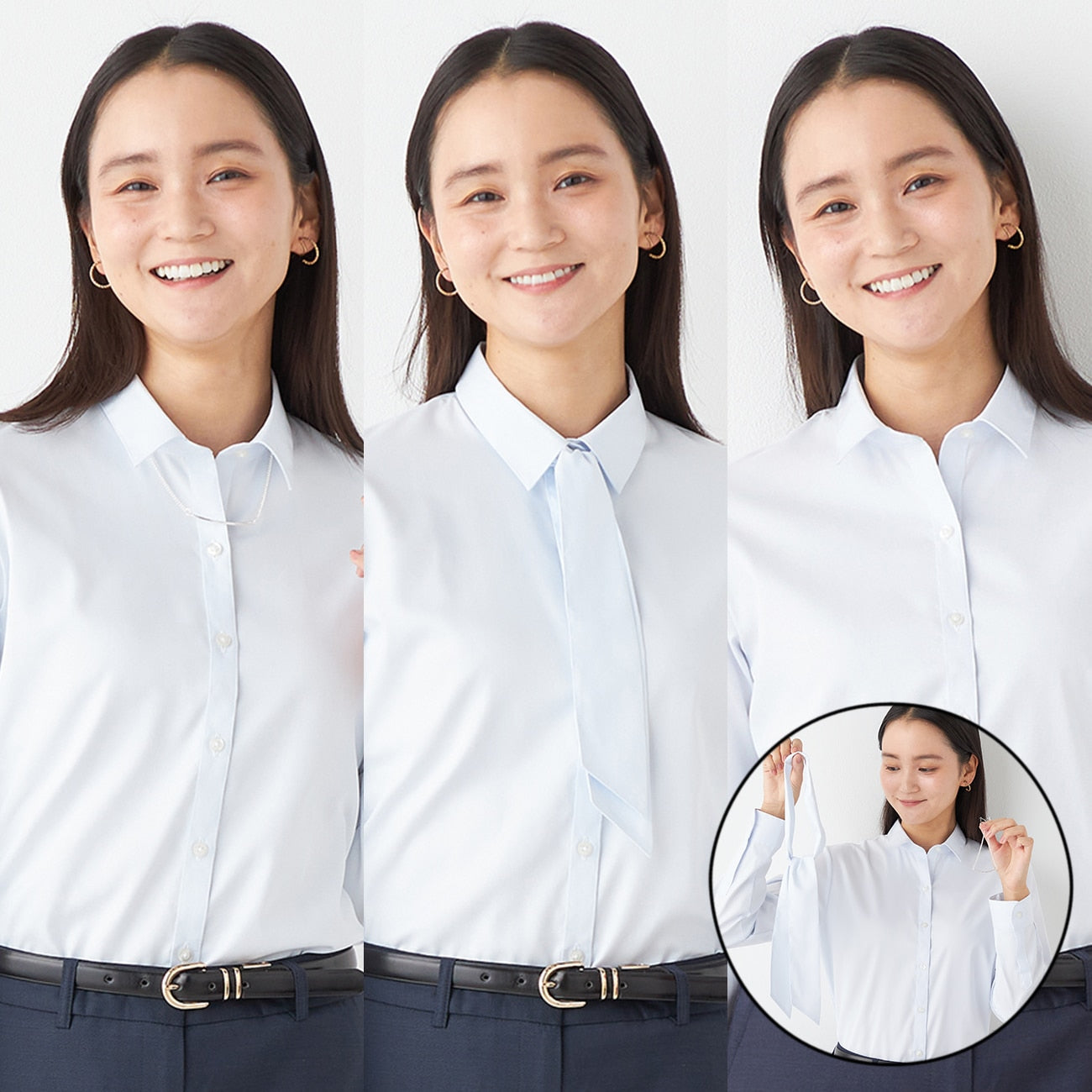 Versatile 3-way shirt with accessory and bow tie for varied styling.