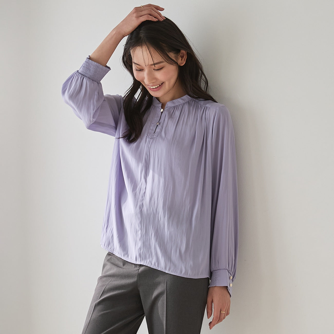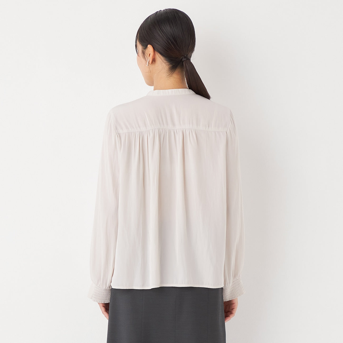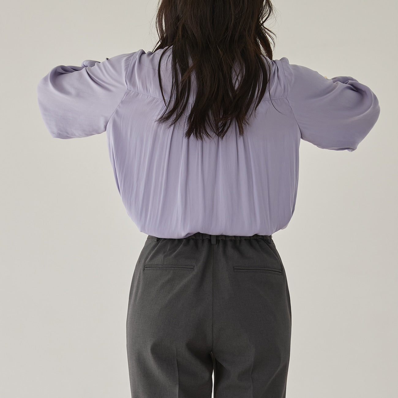 - Shirred elastic cuffs allow you to easily adjust the sleeve length.