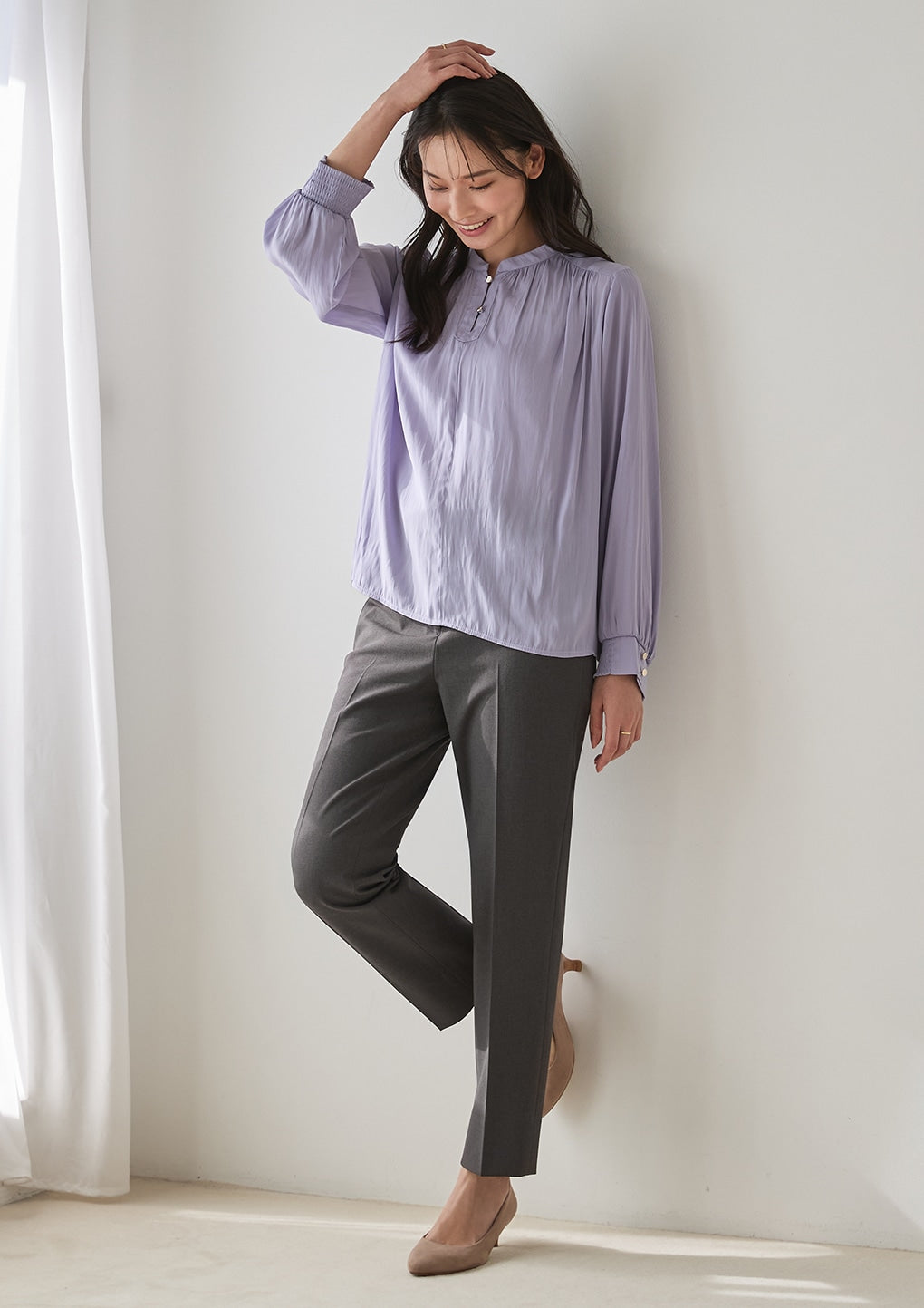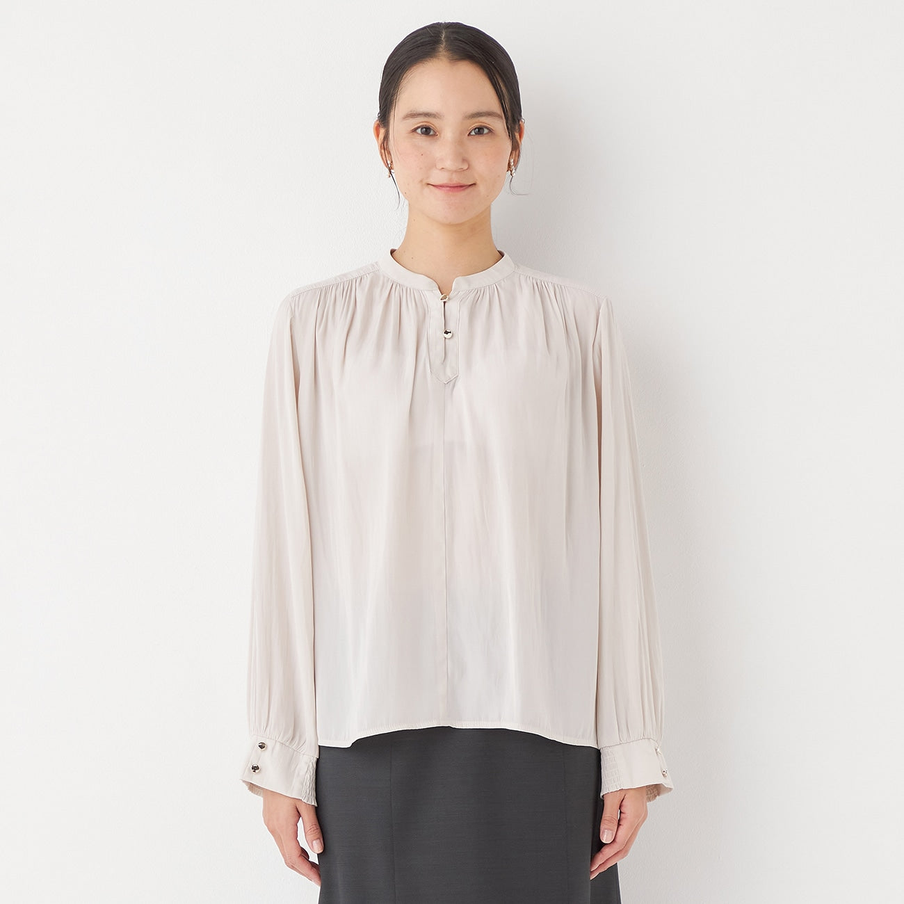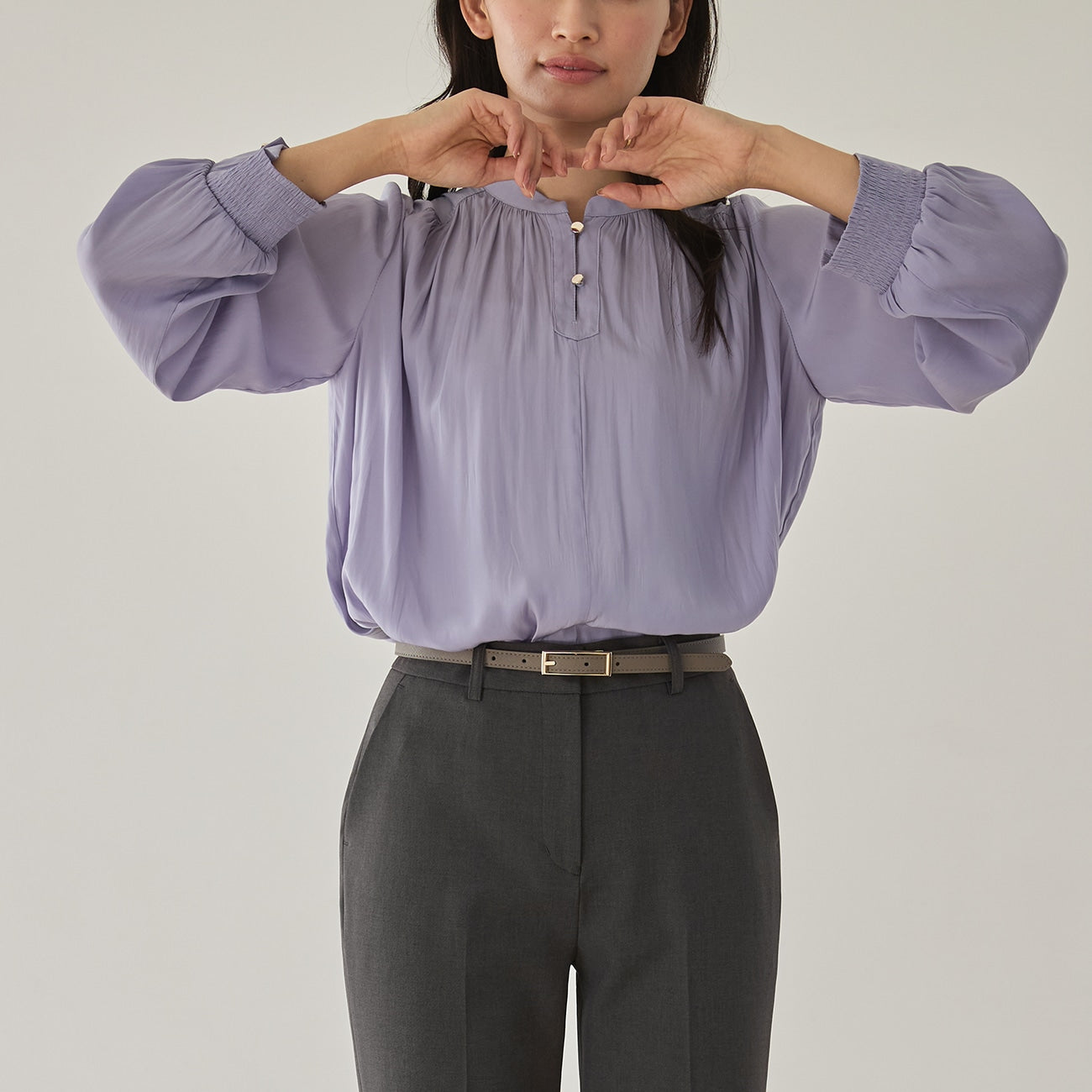 - Shirred elastic cuffs allow you to easily adjust the sleeve length.