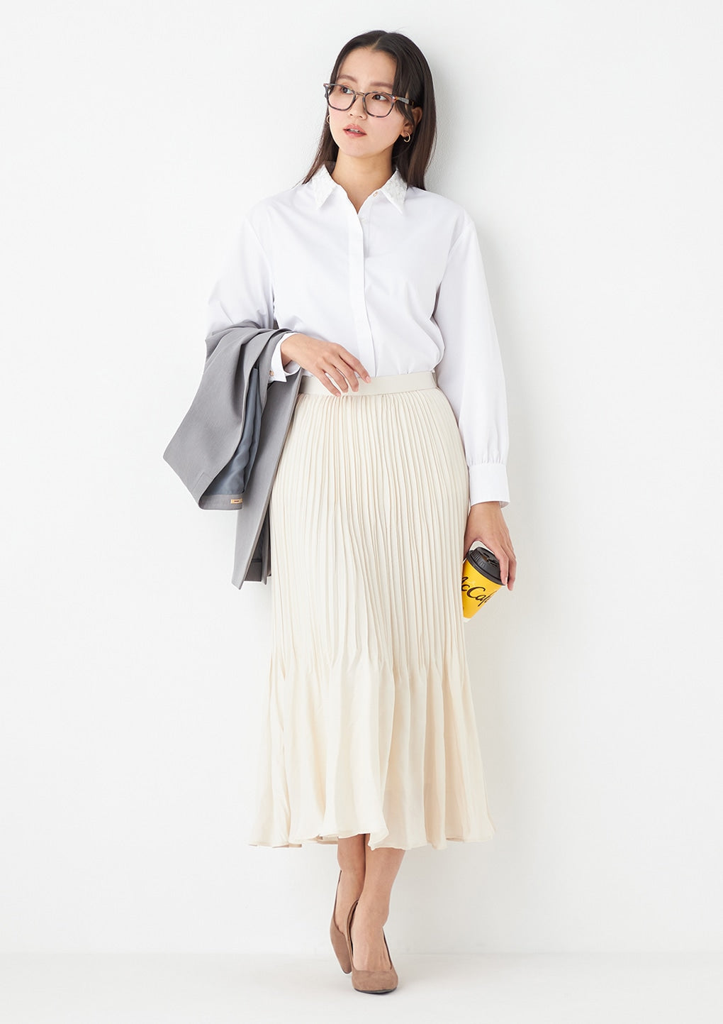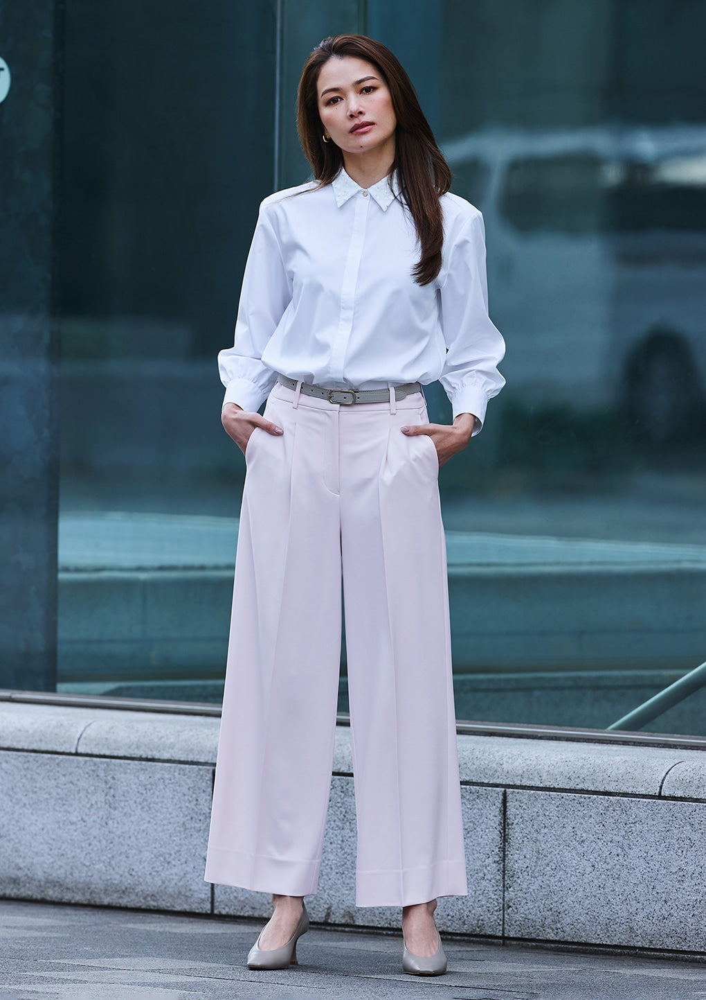 ・领口蕾丝刺绣,为衬衫点缀华美气息。