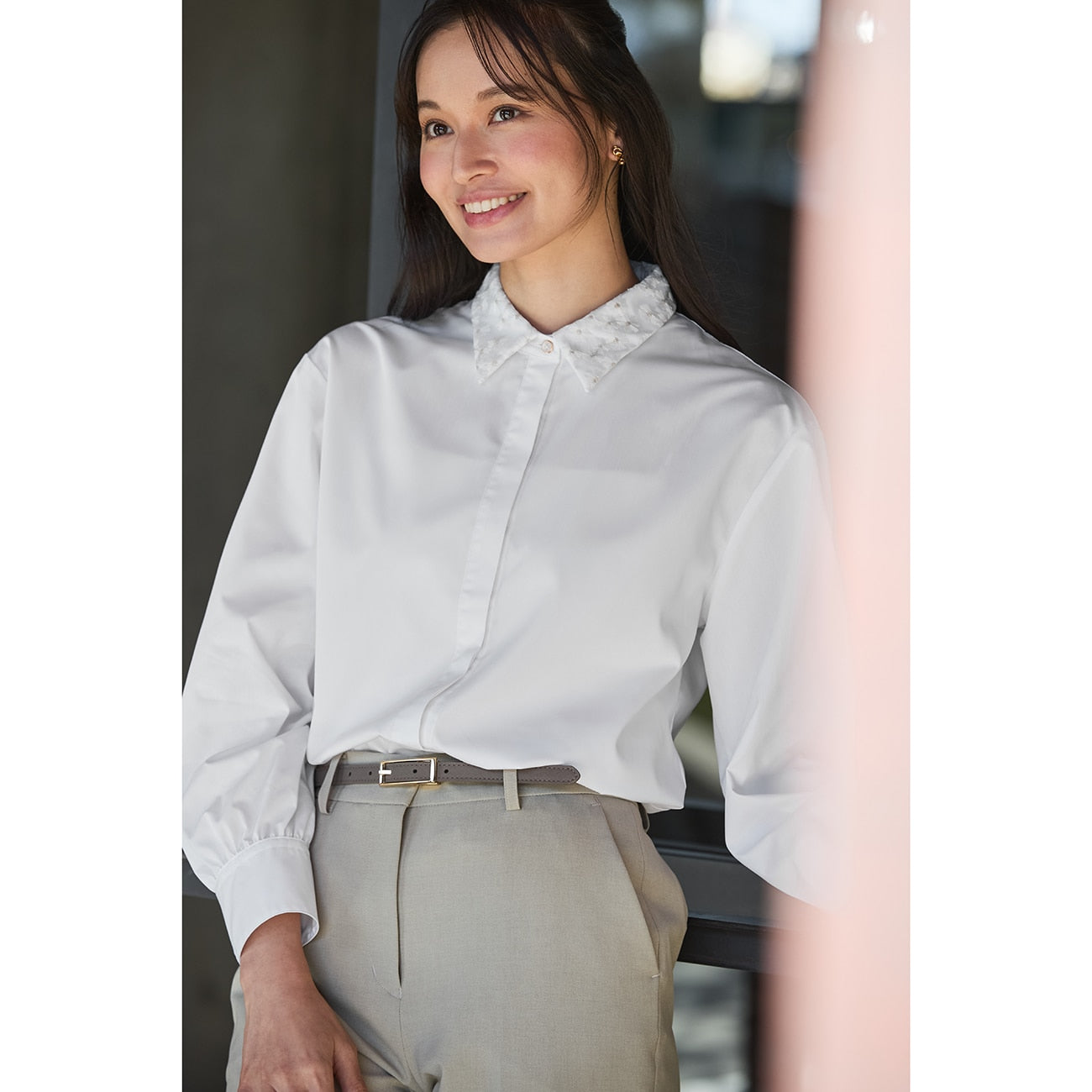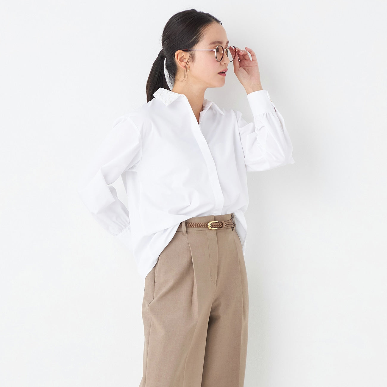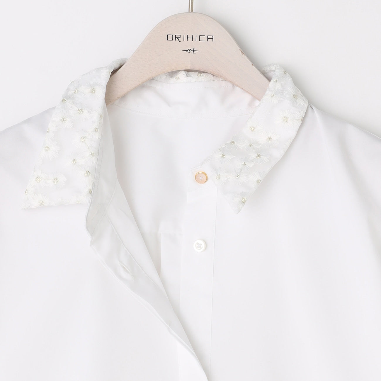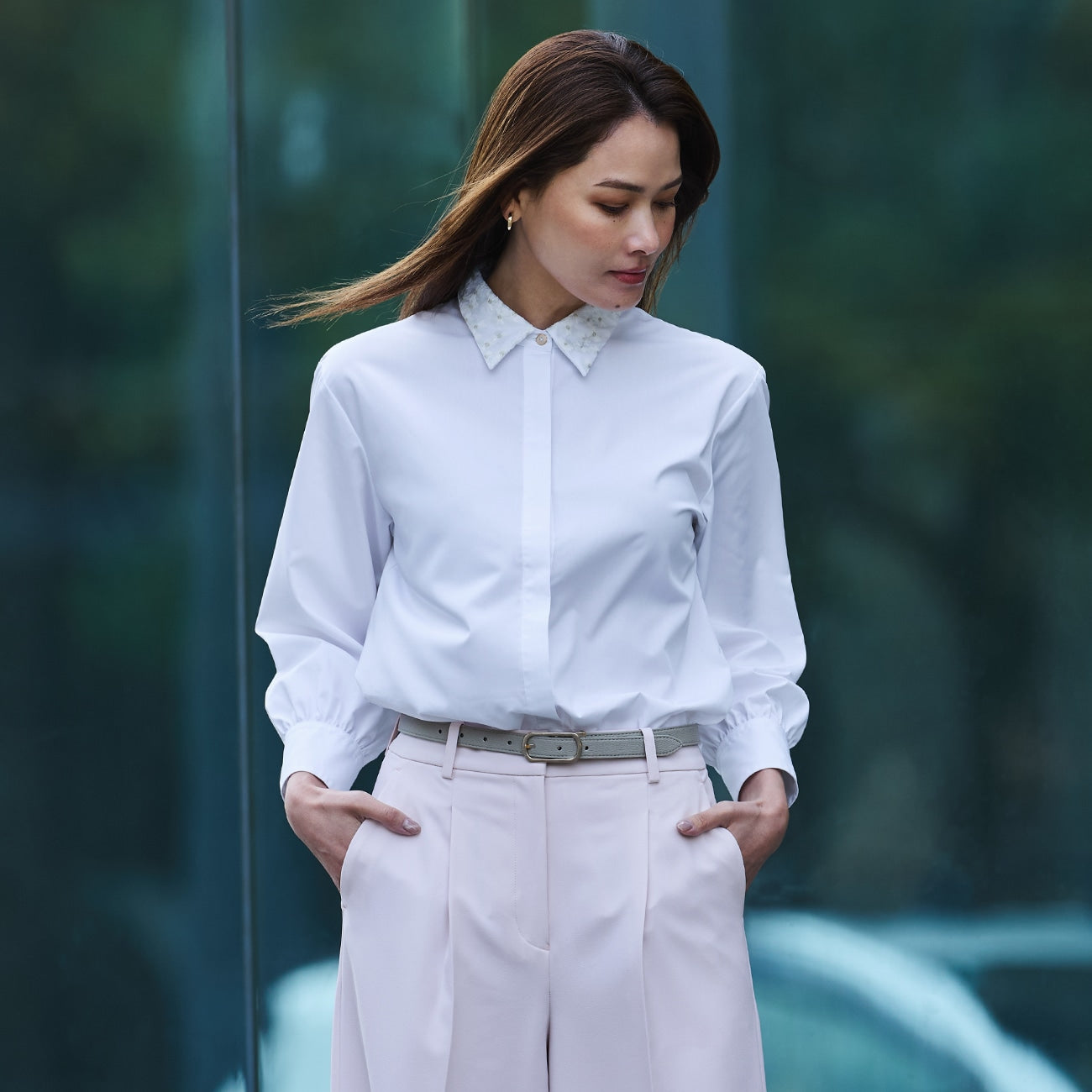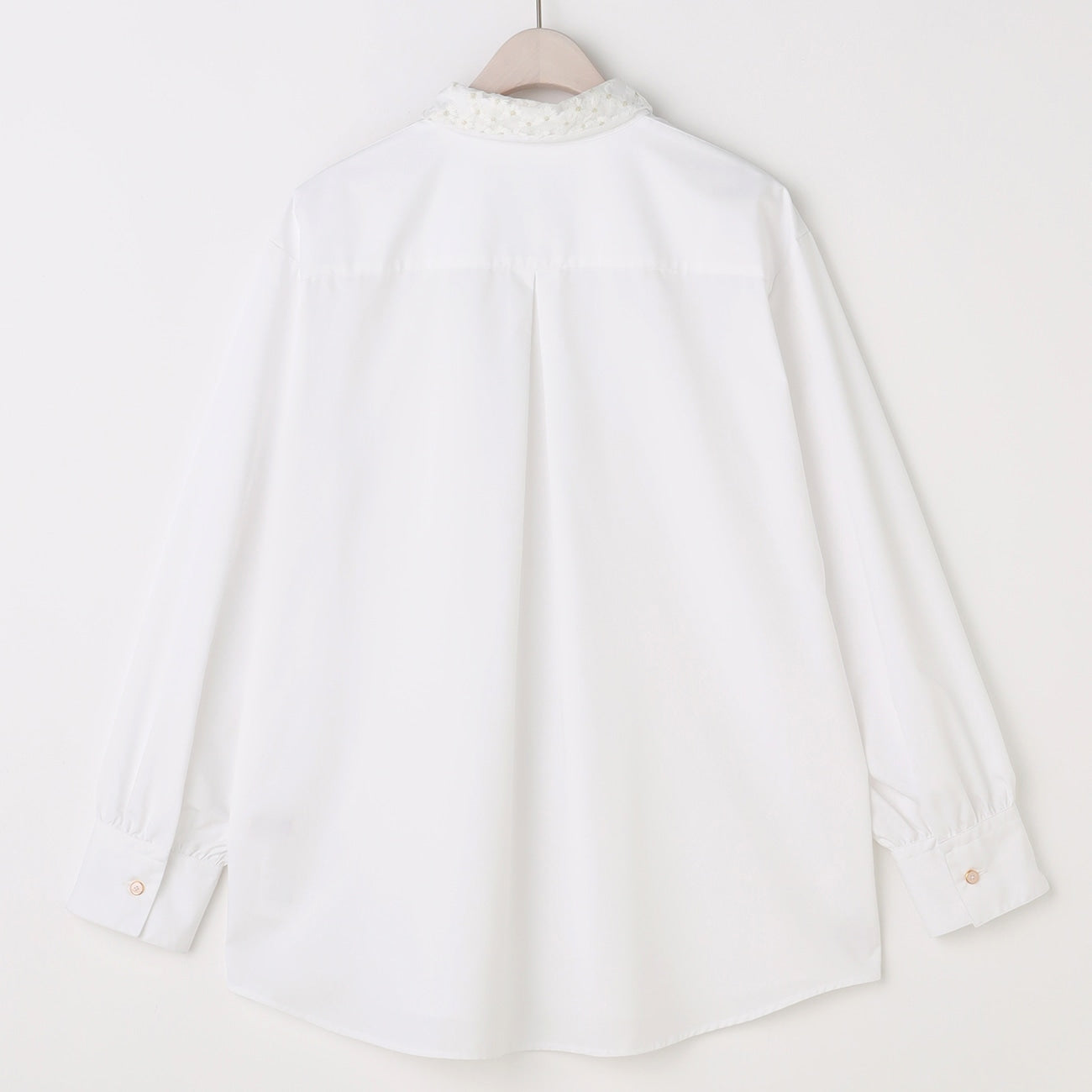 ・領口蕾絲刺繡,為襯衫點綴華美氣息。