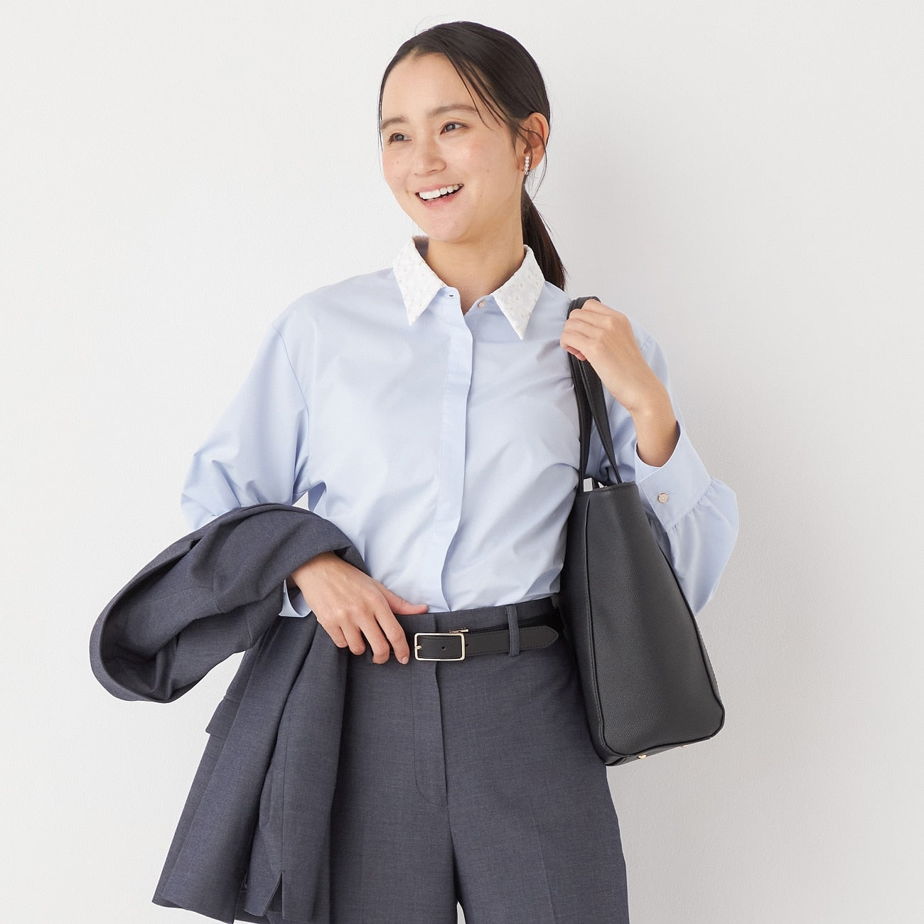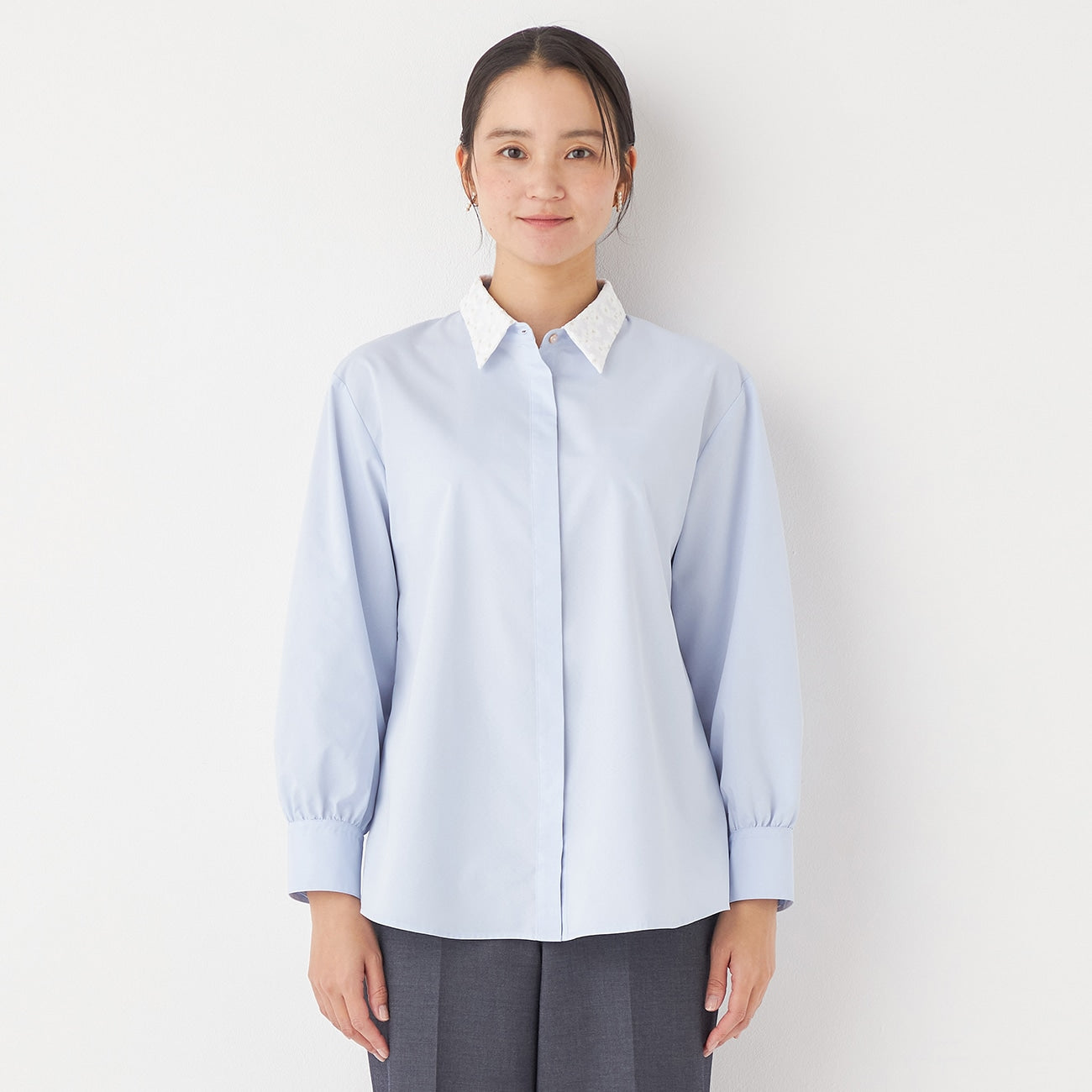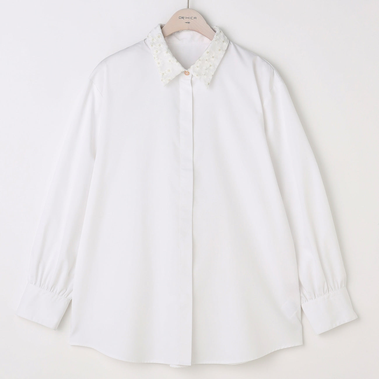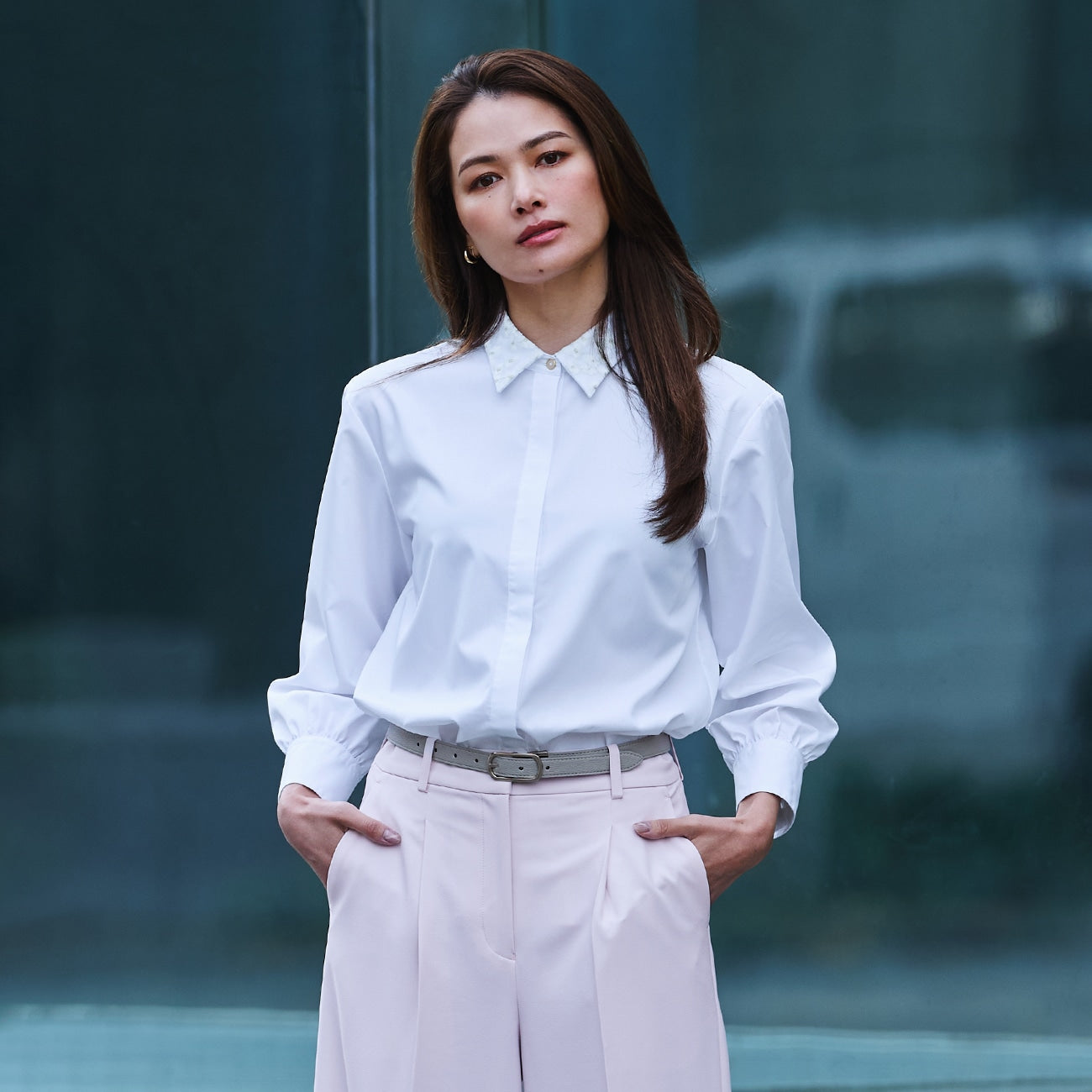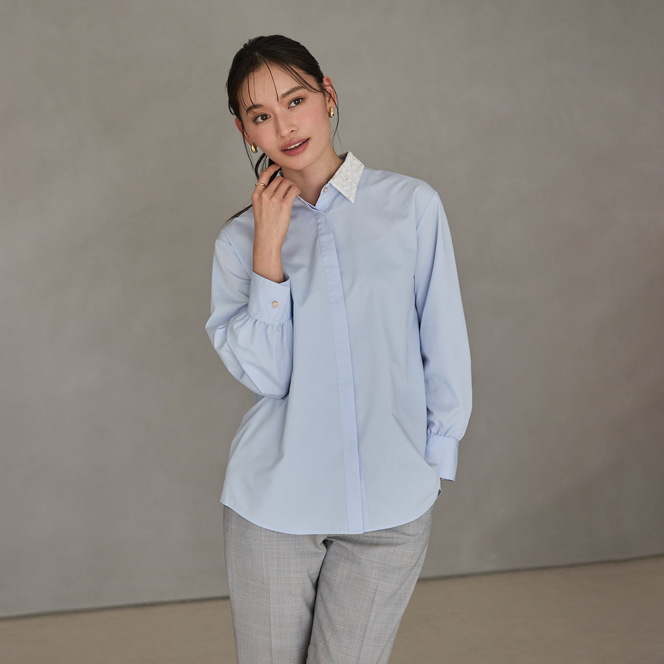 ・領口蕾絲刺繡,為襯衫點綴華美氣息。