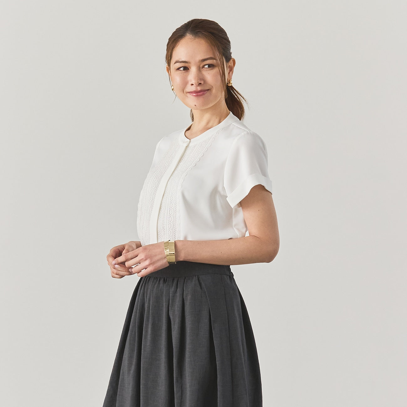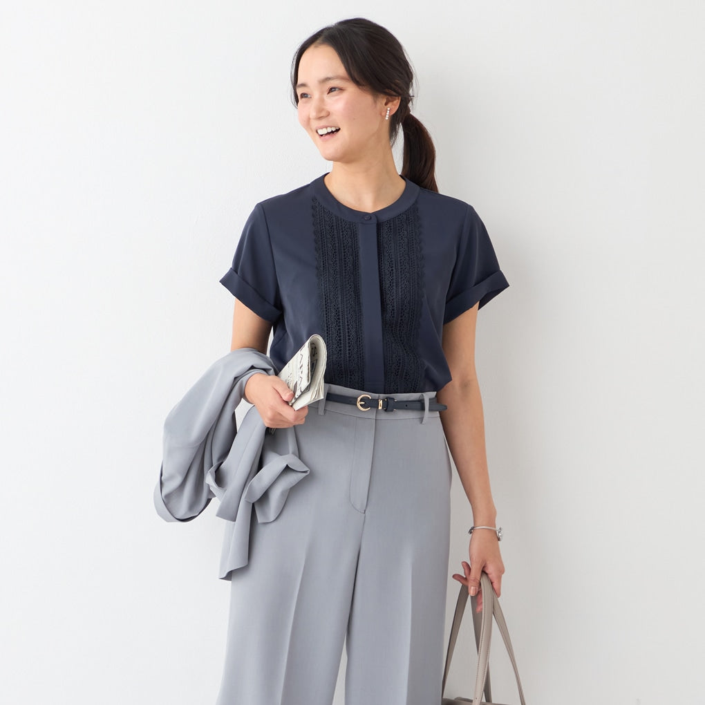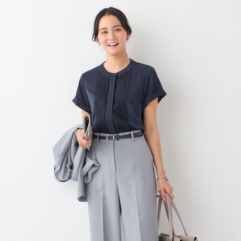 ・華麗胸前蕾絲,打造日系職場優雅造型。