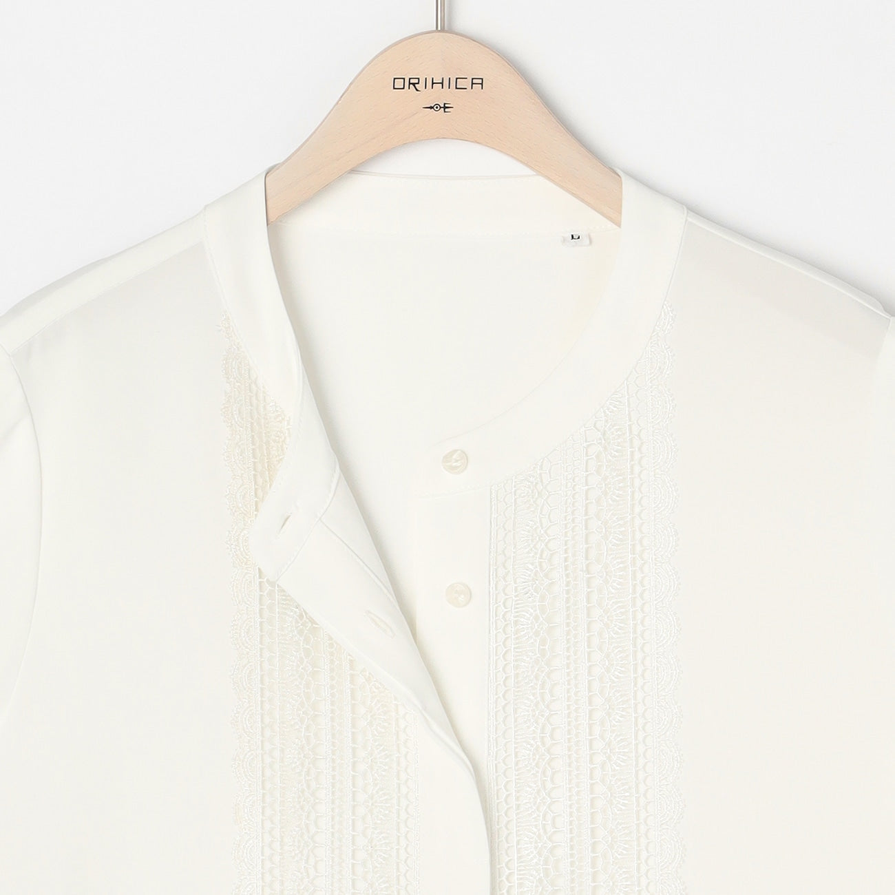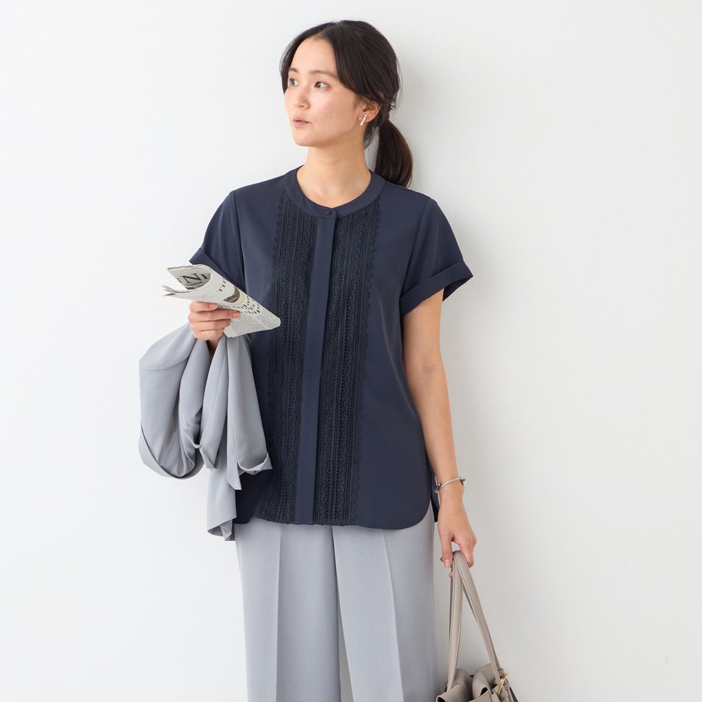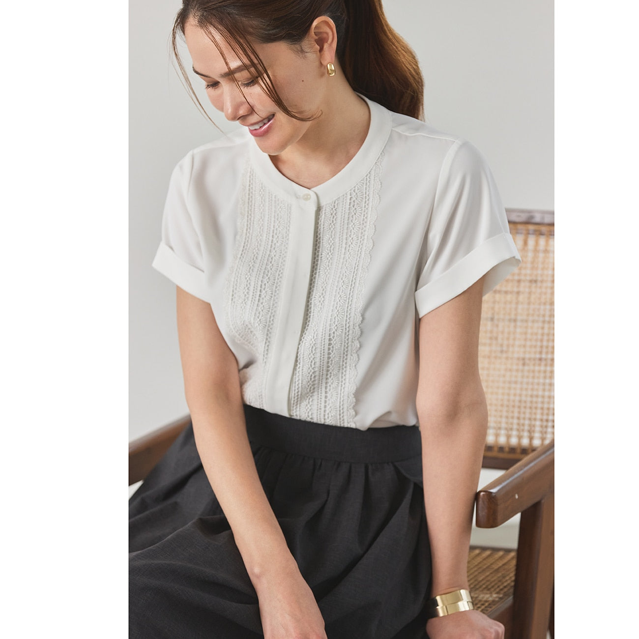・華麗胸前蕾絲,打造日系職場優雅造型。