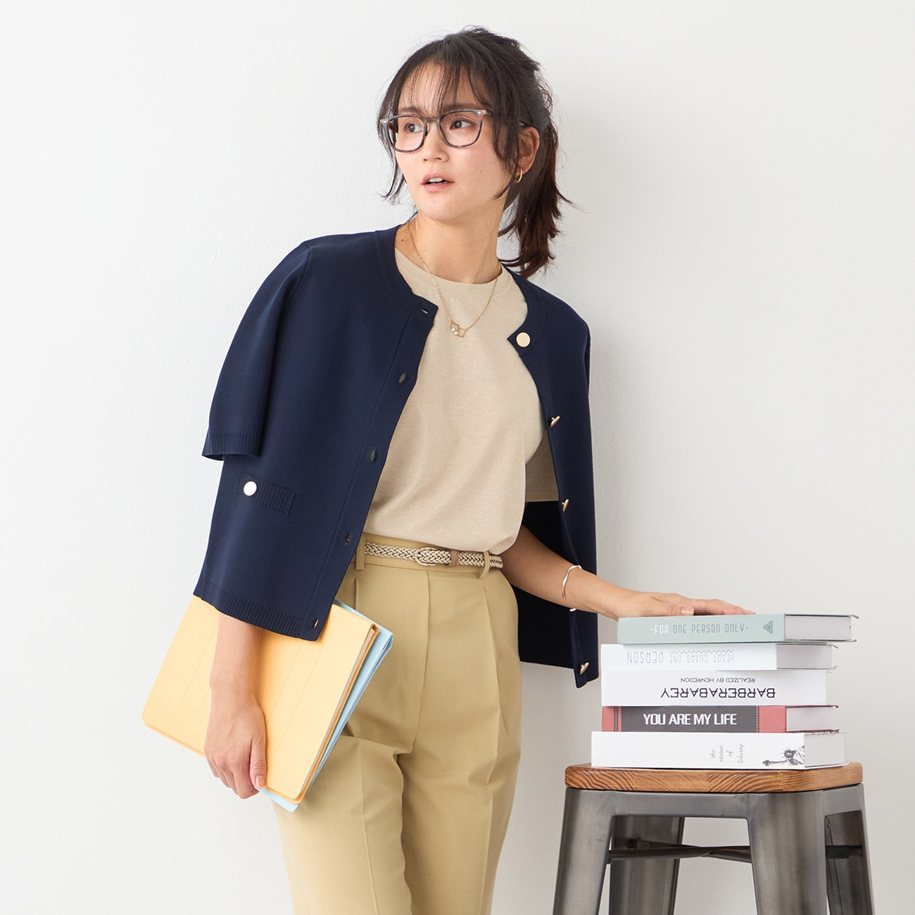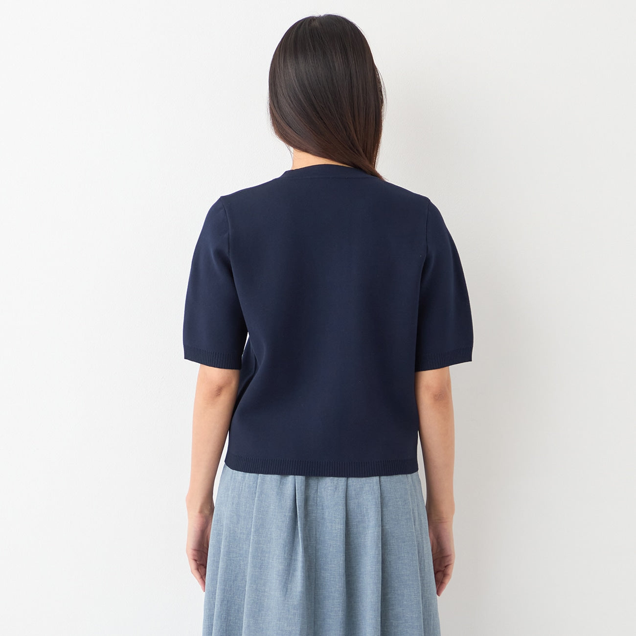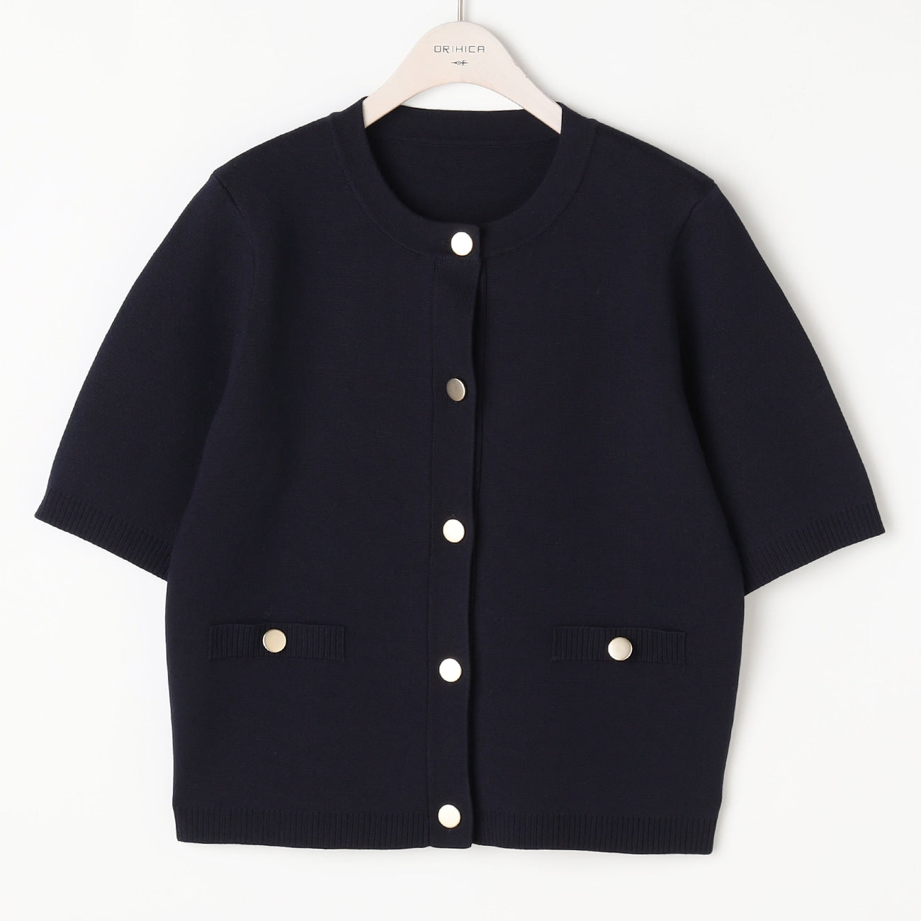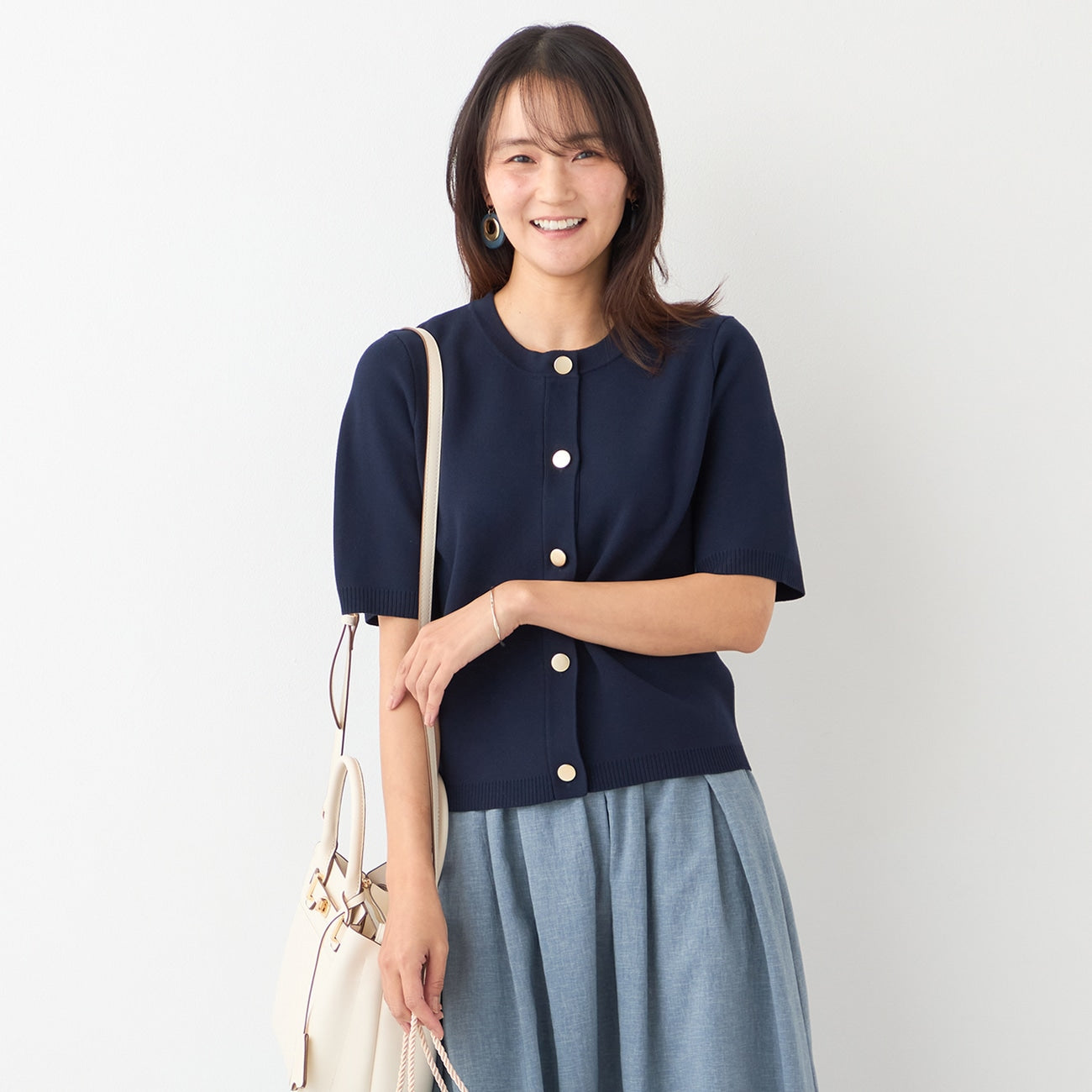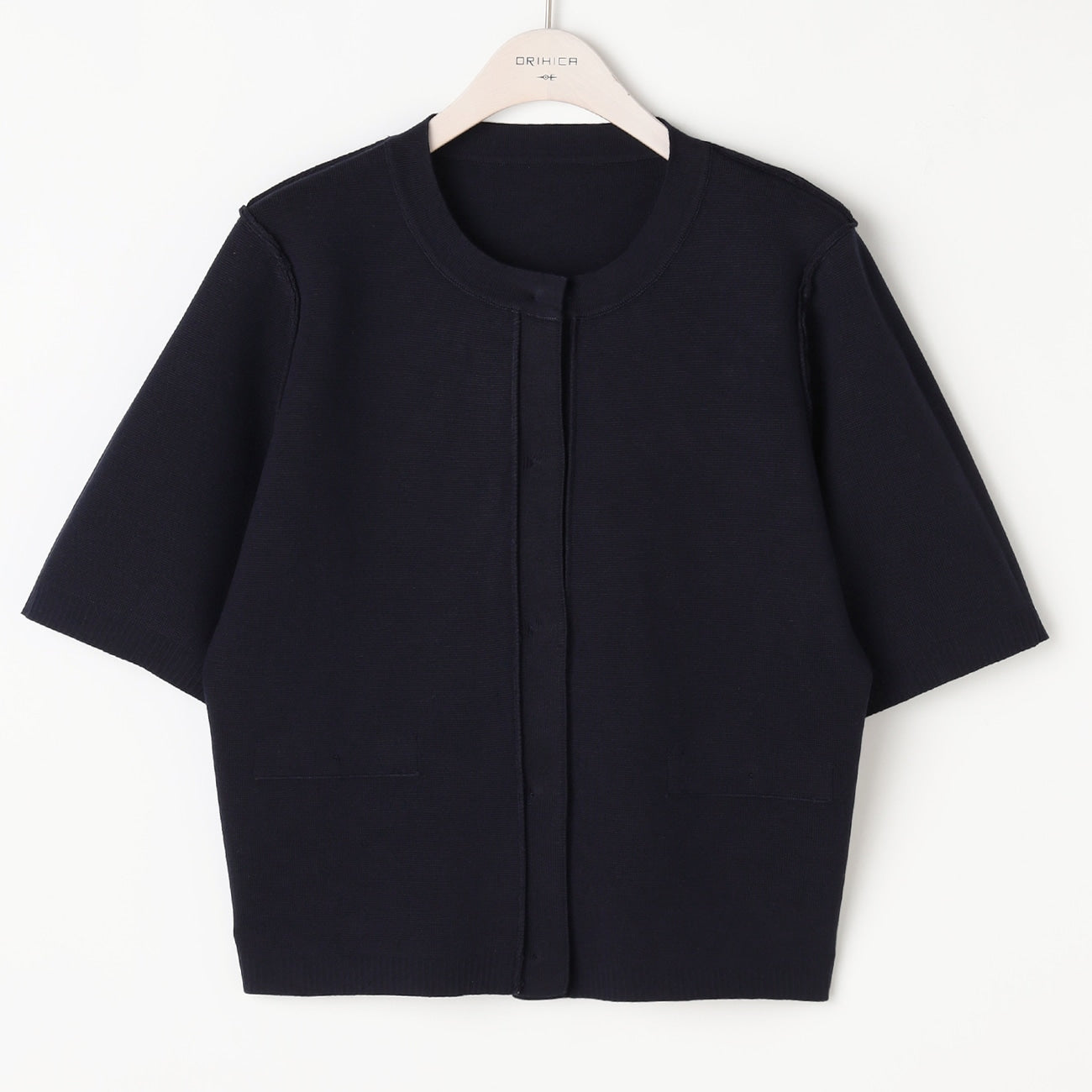 - This short-sleeve knit jacket offers a structured look while being as easy to throw on as a cardigan. It can also be buttoned up & worn as a top.