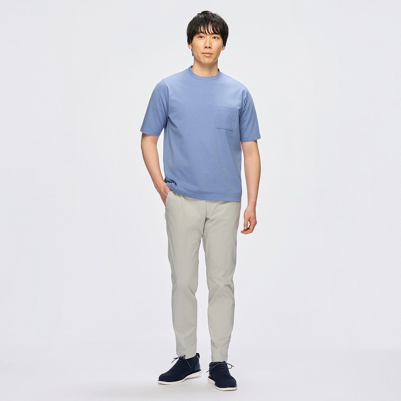 This smooth double jersey fabric T-shirt offers a polished look, perfect for both business and casual occasions.