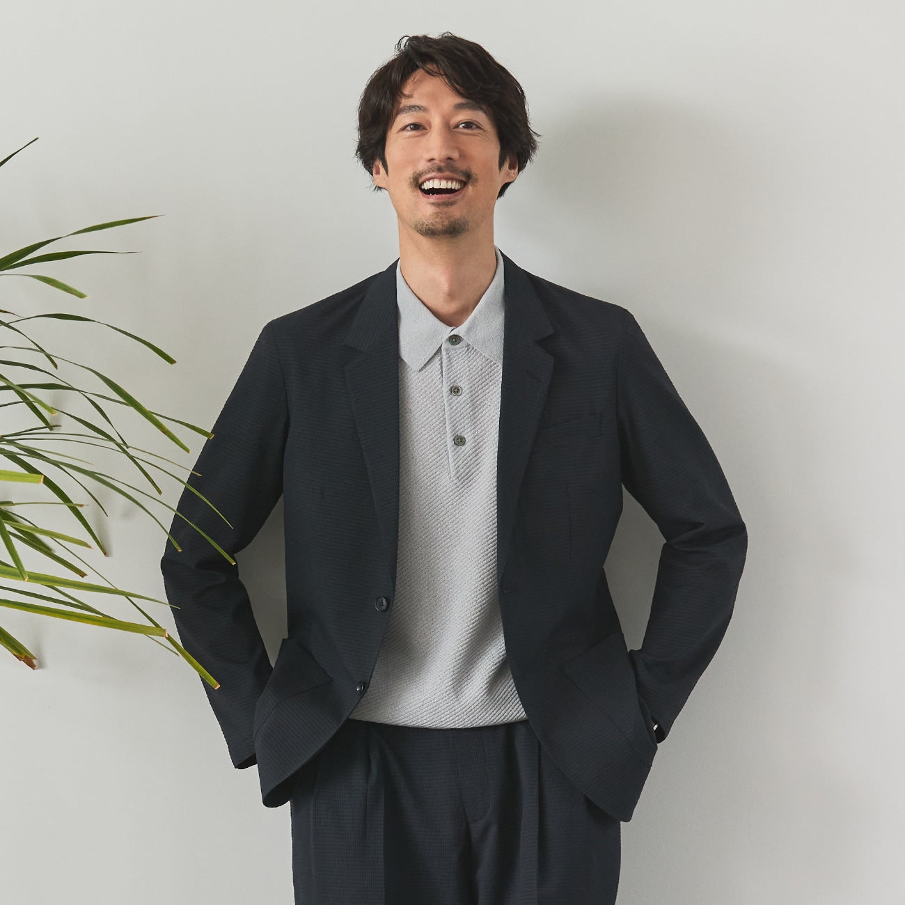 ・西裝外套:2顆扣子、無開叉、直筒袖、無內裏、貼袋設計。