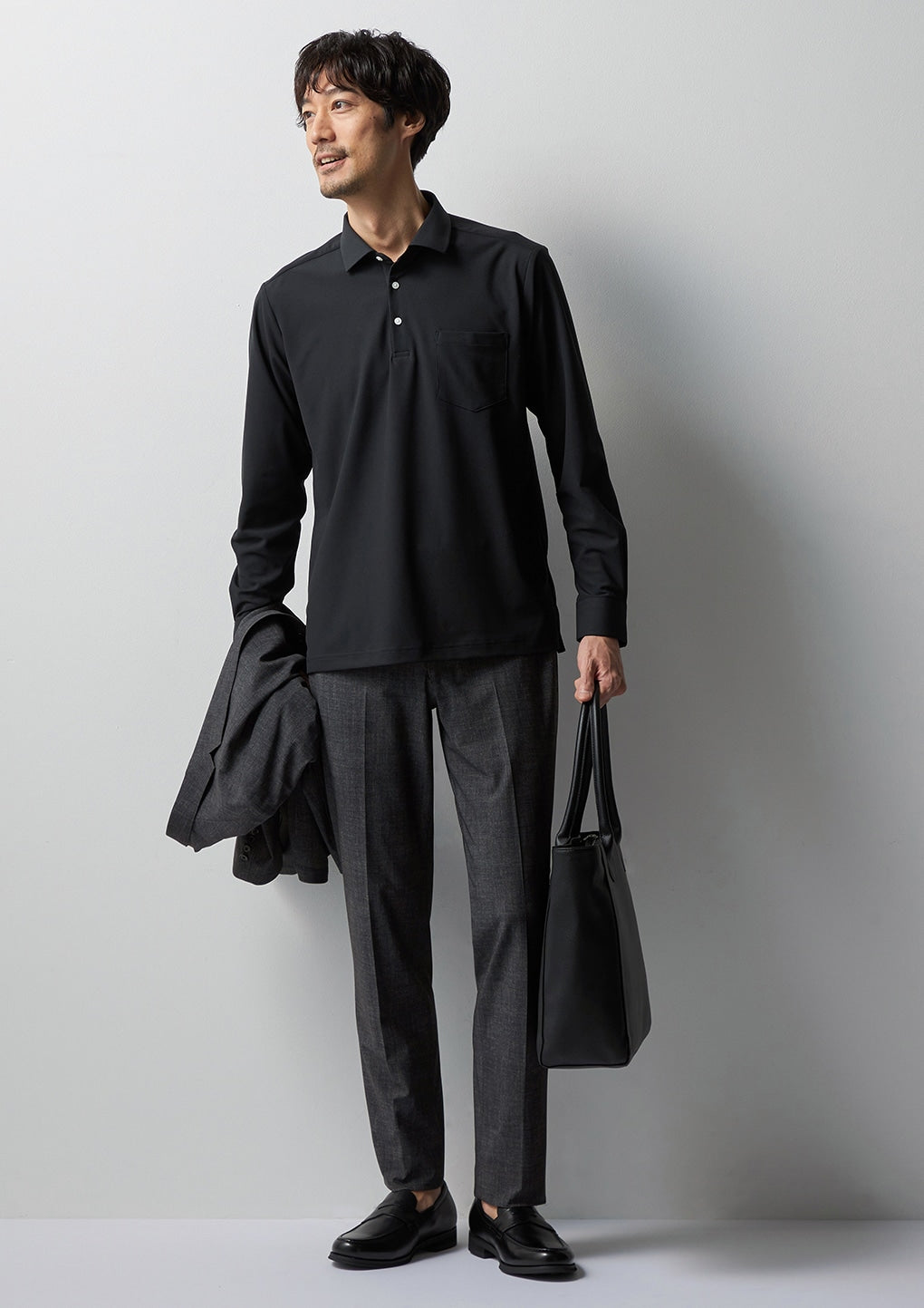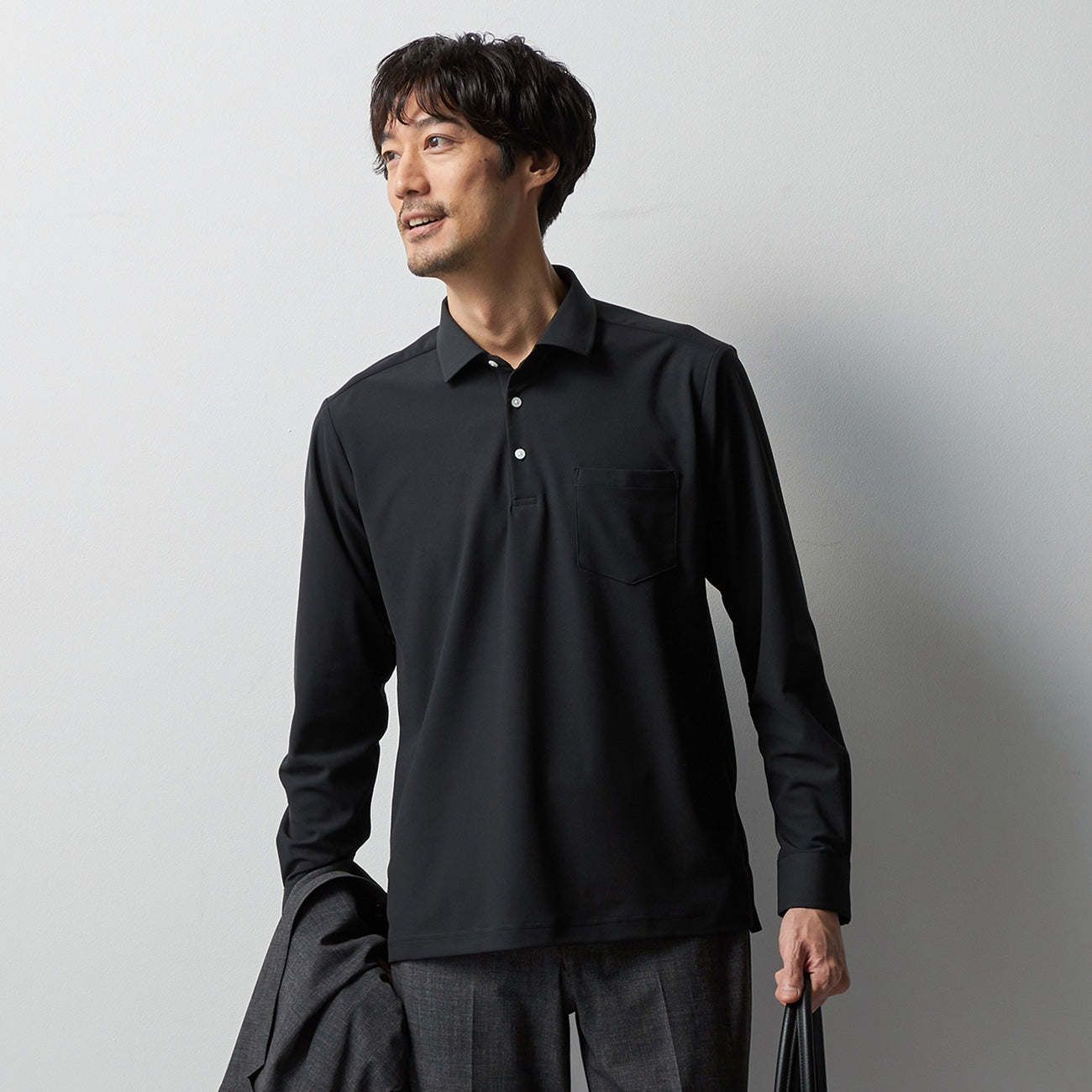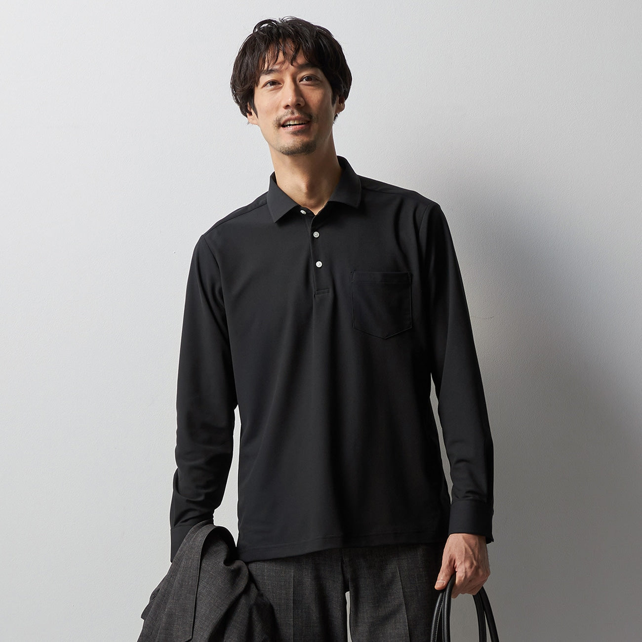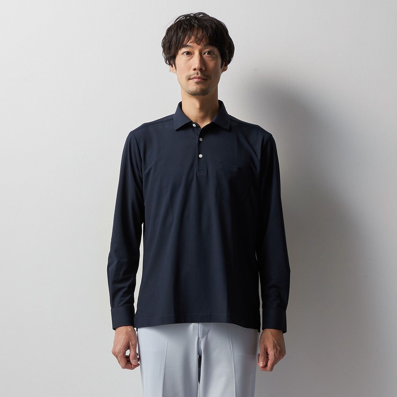 - Functional long sleeve polo shirt suitable for business, casual, and golf scenes.