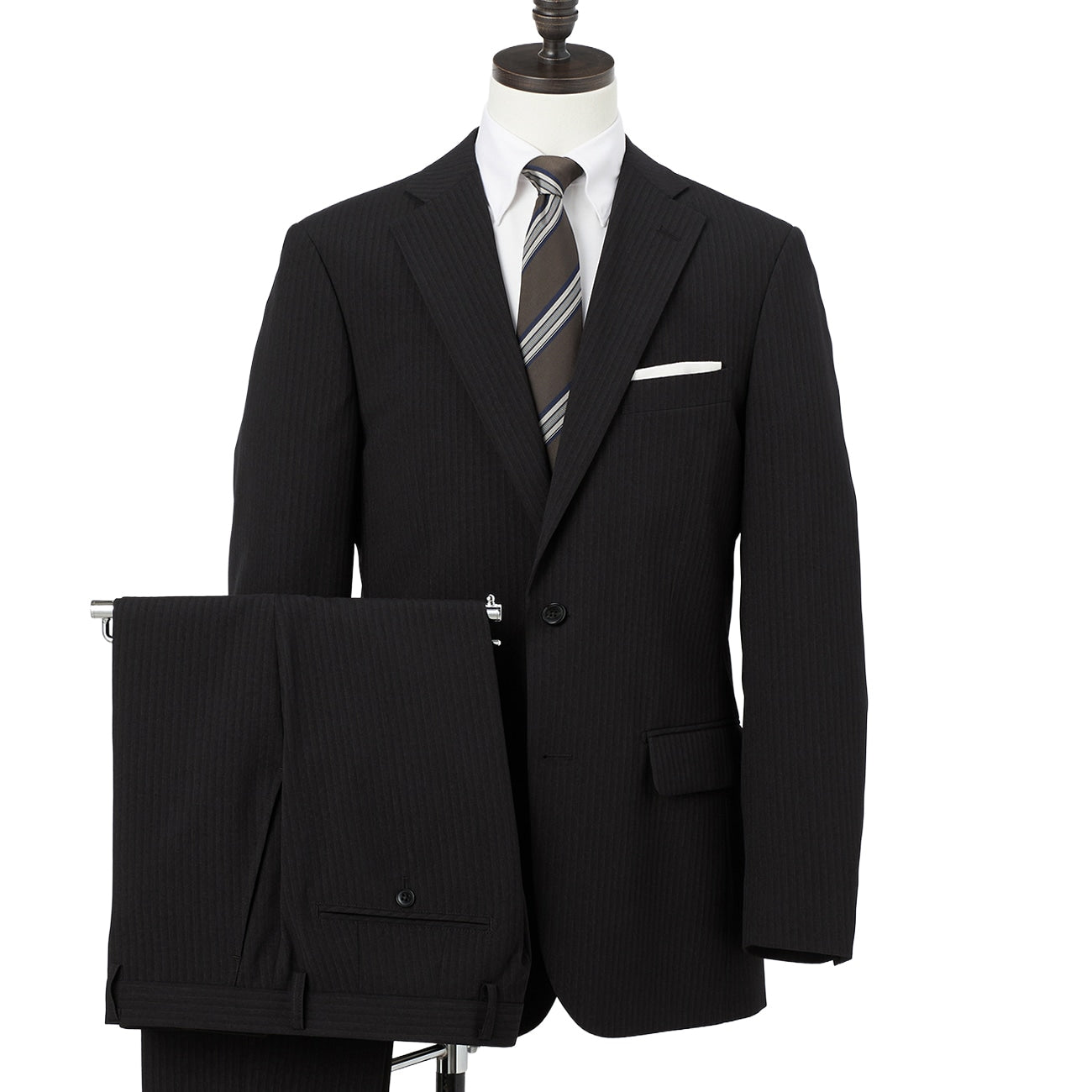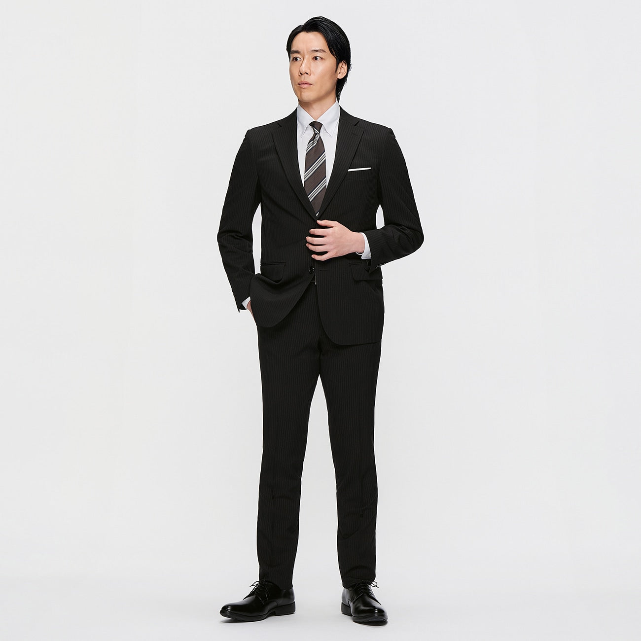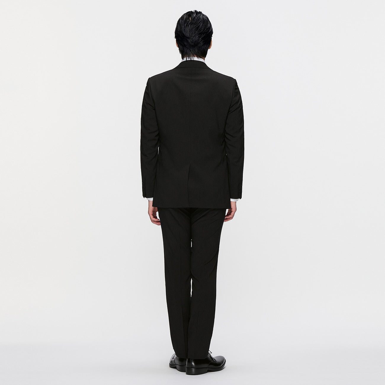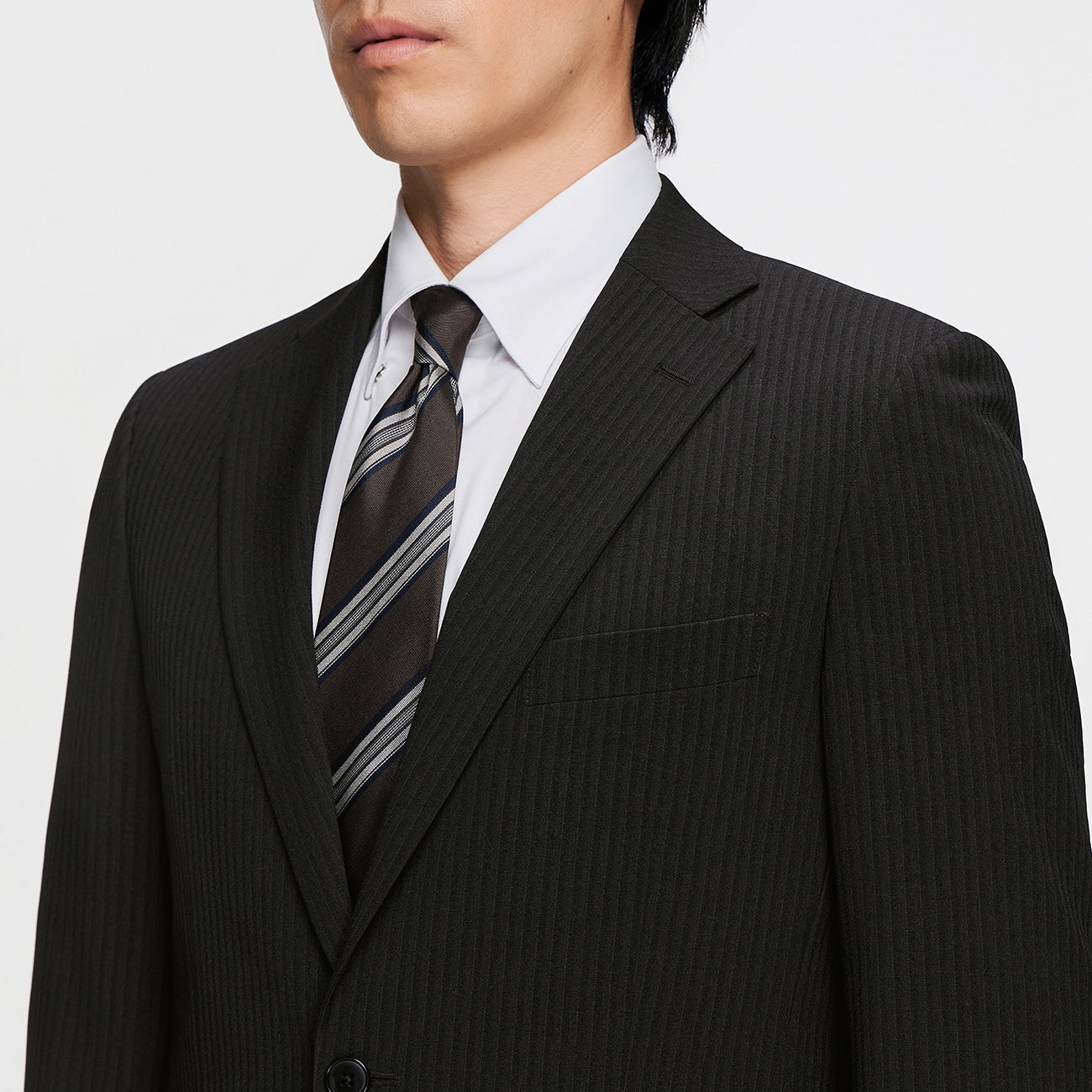 可機洗修身條紋西裝 - 黑色_02