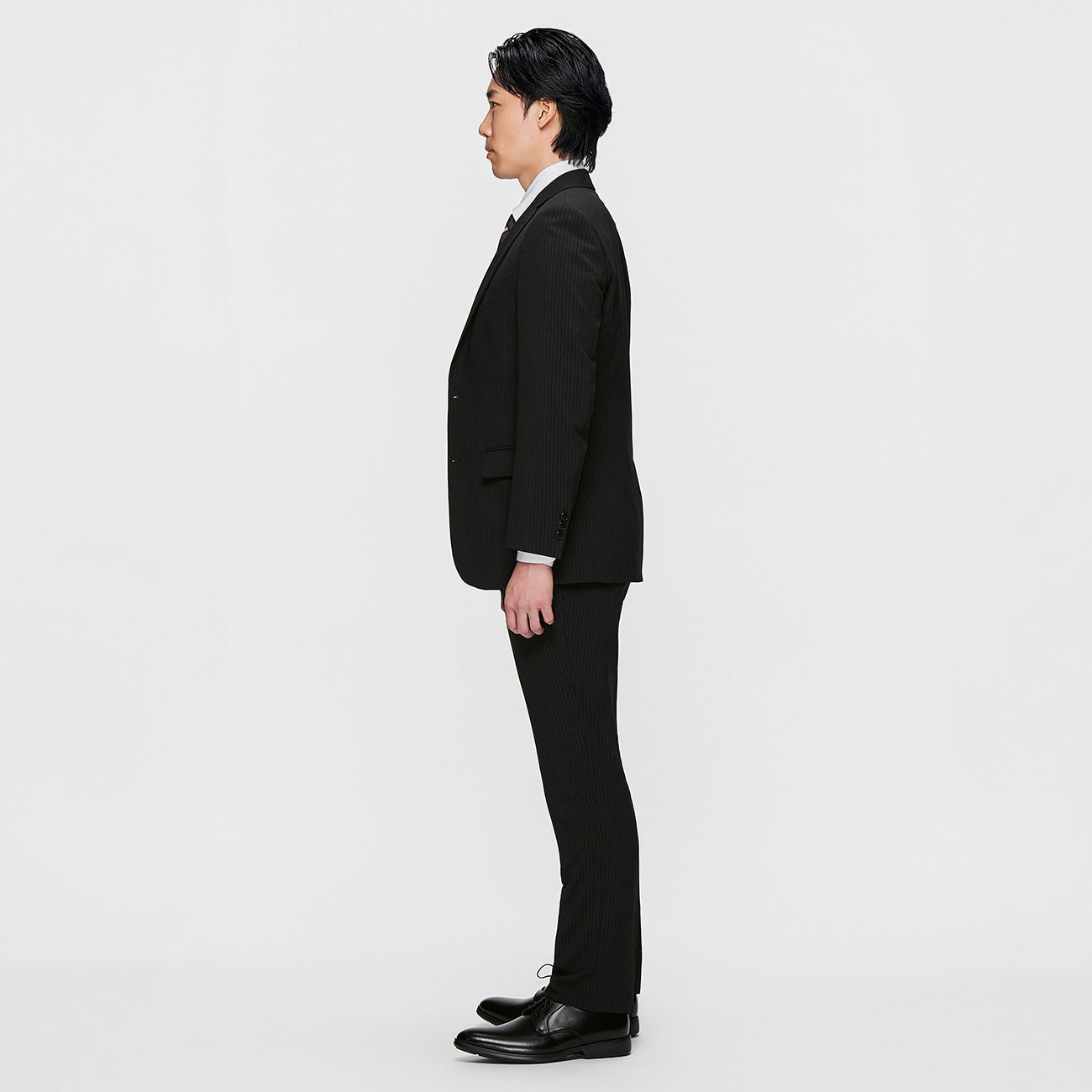 可機洗修身條紋西裝 - 黑色_07