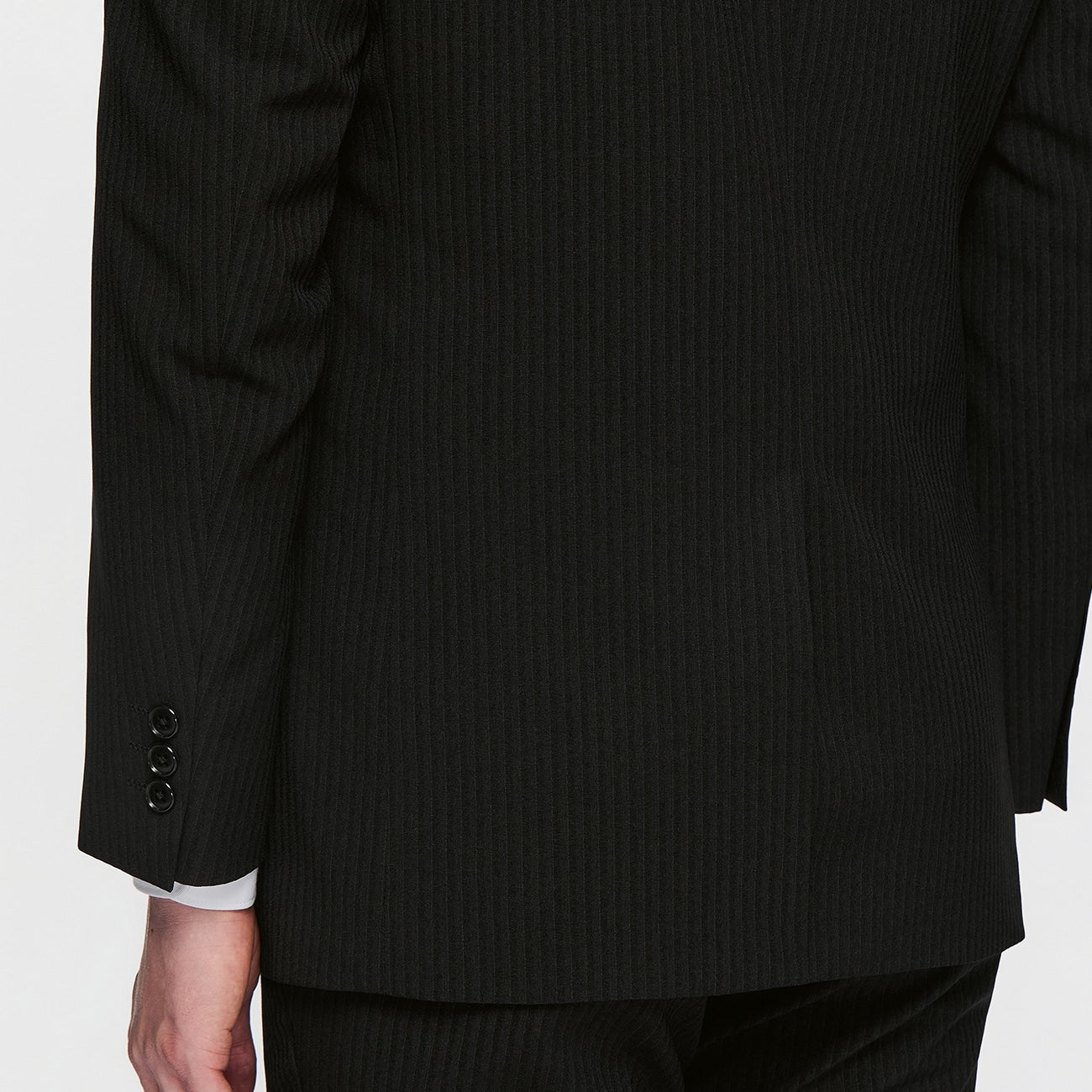 可機洗修身條紋西裝 - 黑色_03
