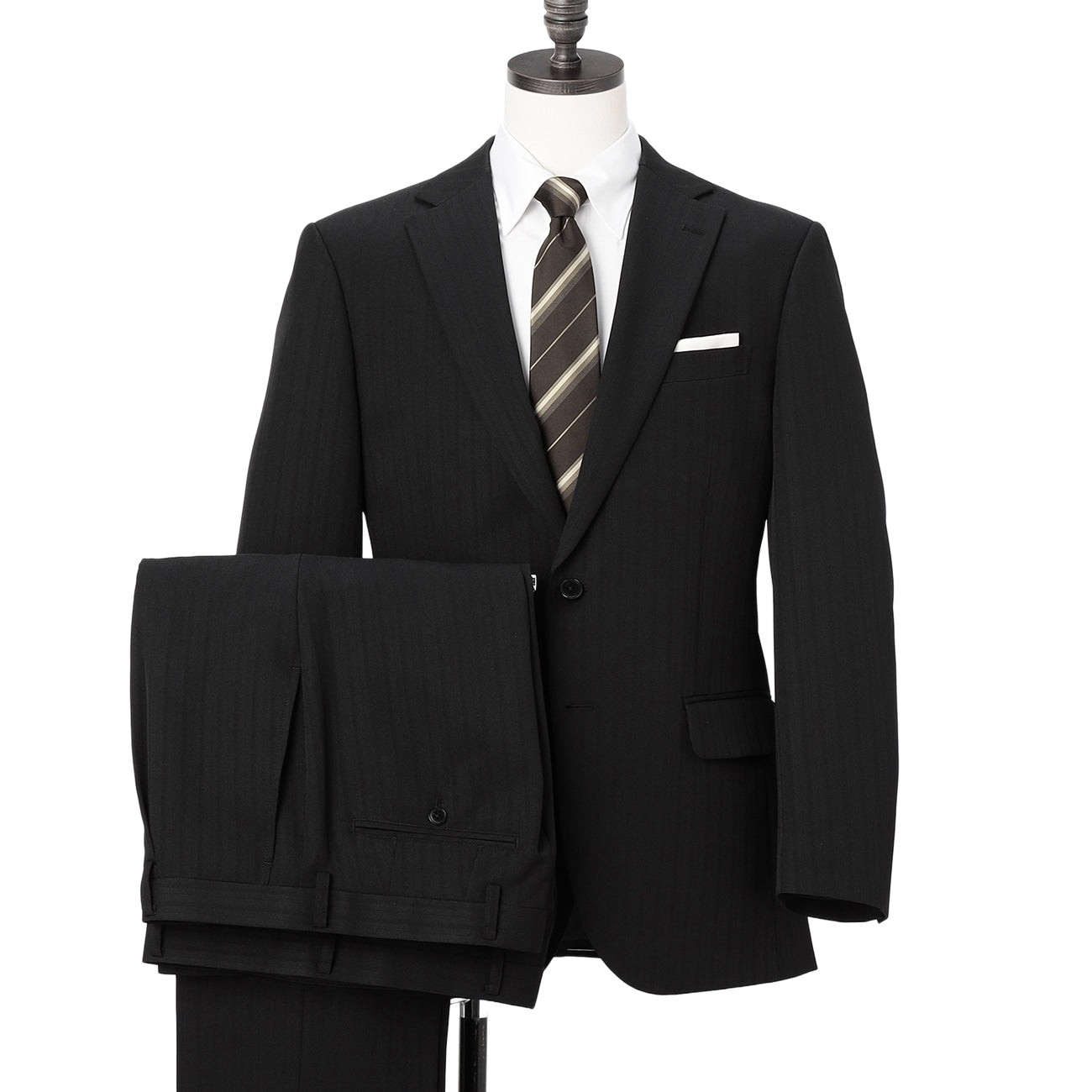 輕彈可機洗條紋西裝 西裝褲兩件組 黑