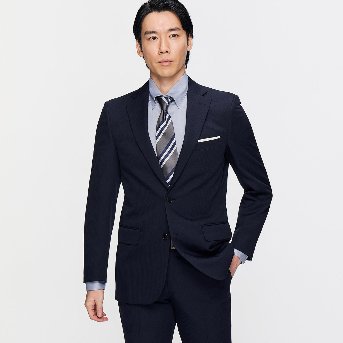 可機洗修身條紋西裝 深藍