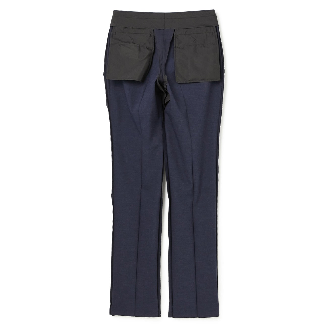 聚酯纖維和羊毛混紡,讓布料既有羊毛的柔軟與質感,也具備聚酯纖維的彈性機能。修身錐形褲型,呈現優雅輪廓。