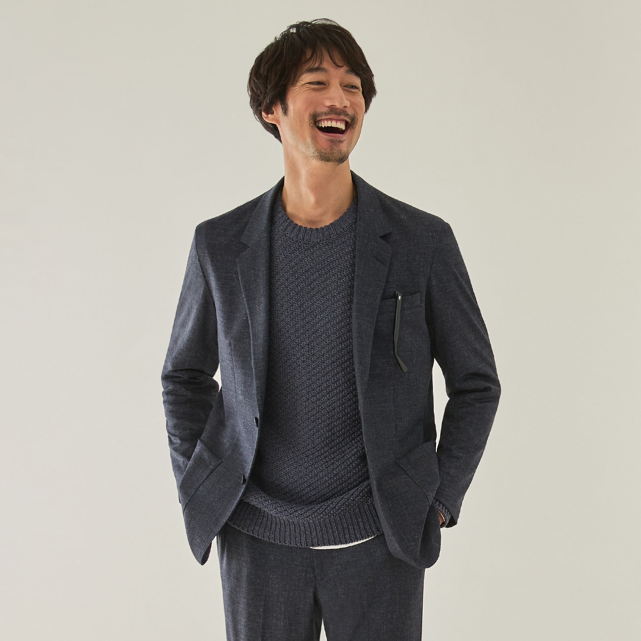 Next-generation "THE THIRD SUITS" denim-like jacket for versatile styling.