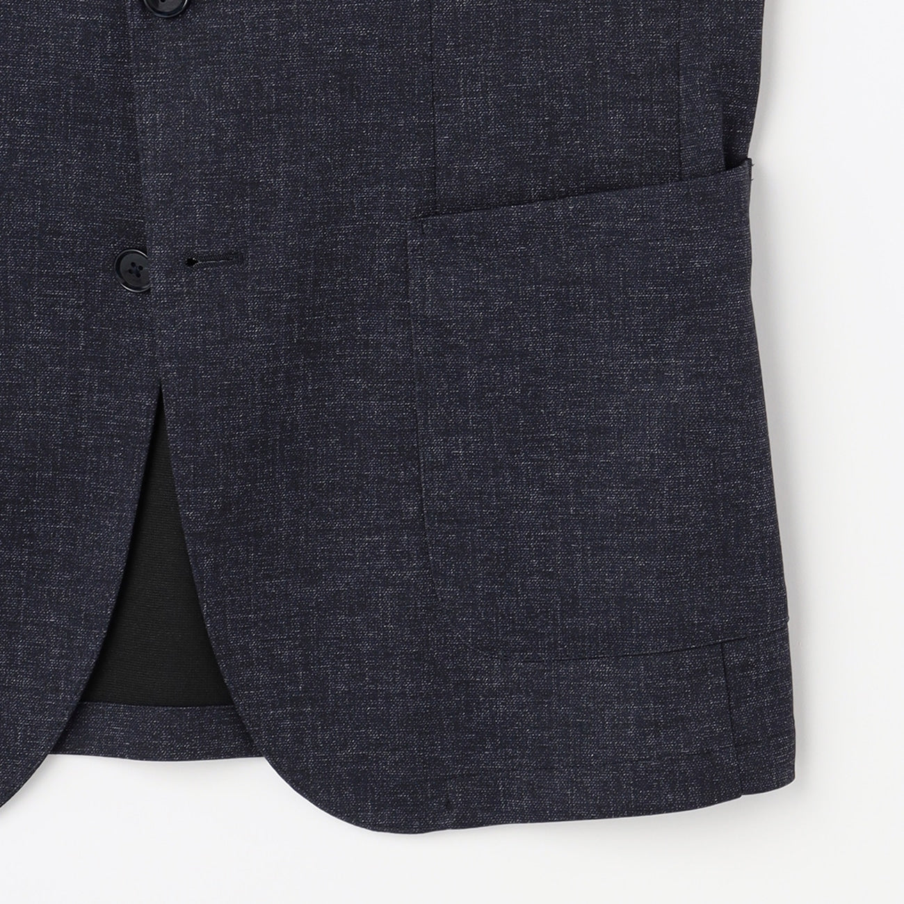 - 2-button, no vent, tubular sleeves, unlined.