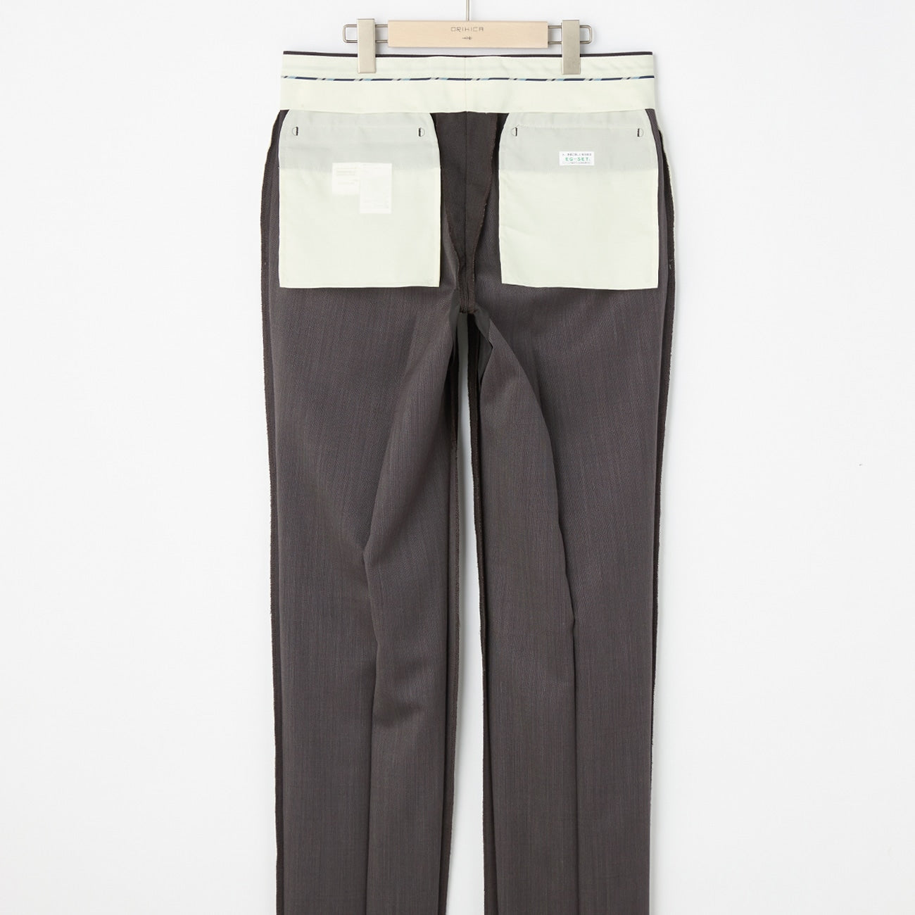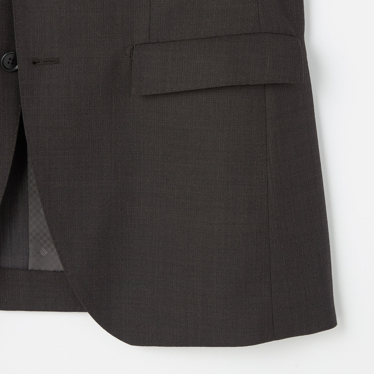 ・西裝外套:2顆鈕扣、背開中叉、袖口假扣眼、半內裏。西裝褲:無摺。