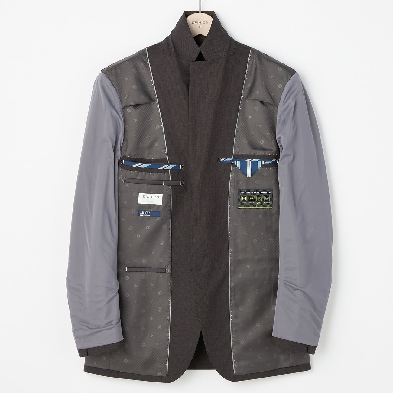 ・羊毛和聚酯纖維混紡,質感光澤與彈性、防皺機能兼具。