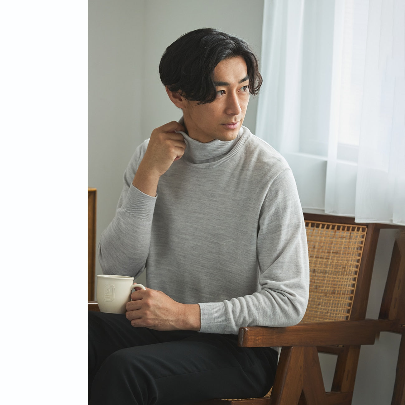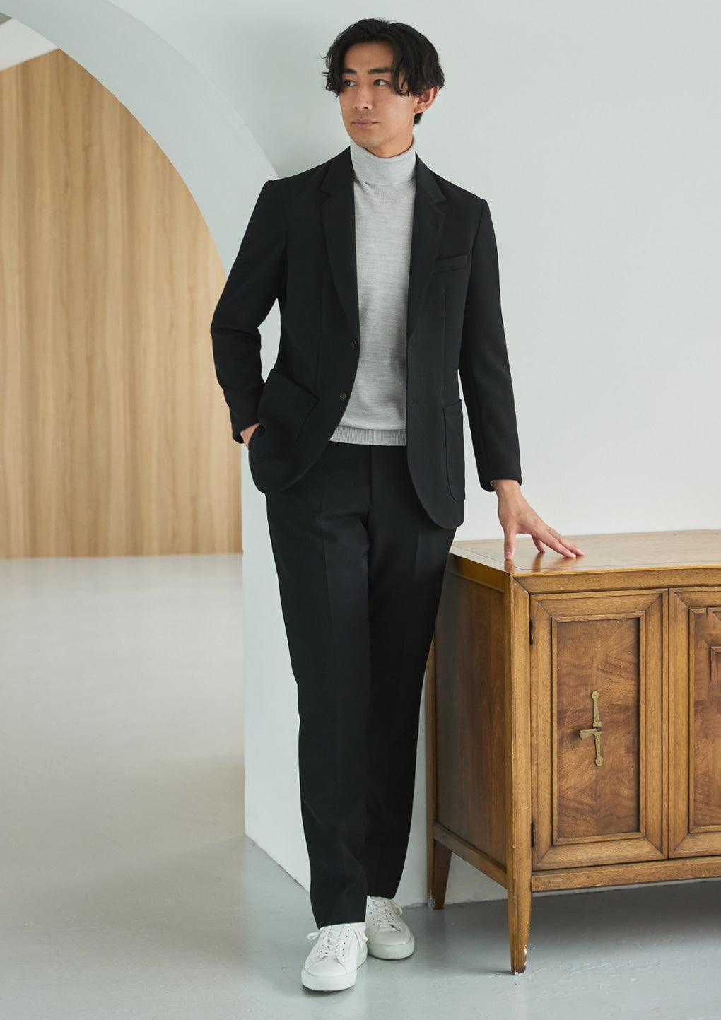 ・質感高密度針織衫,外搭西裝外套也正式得體。