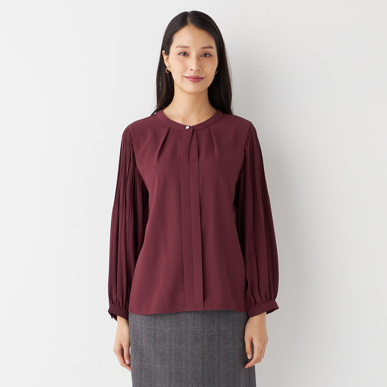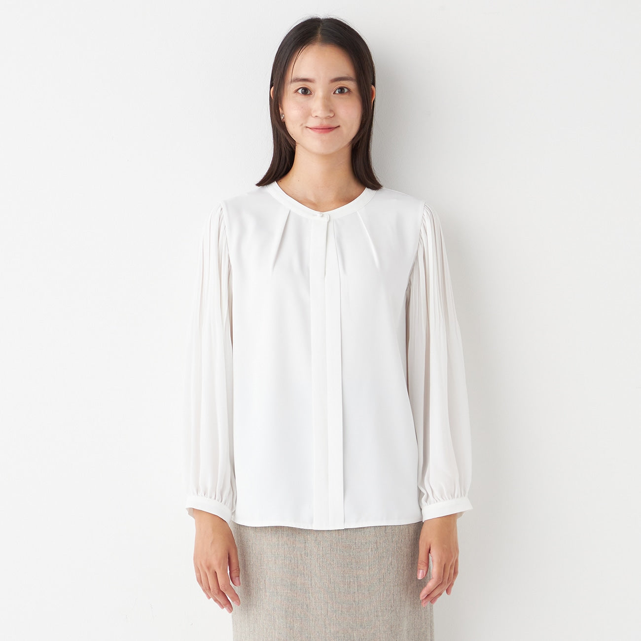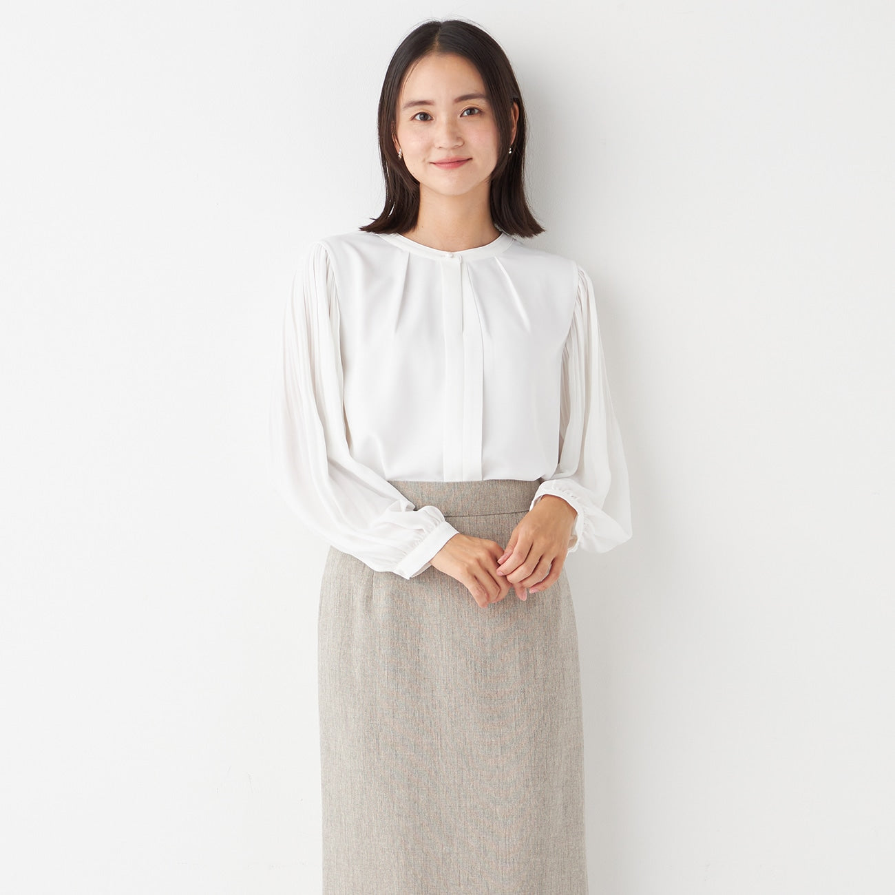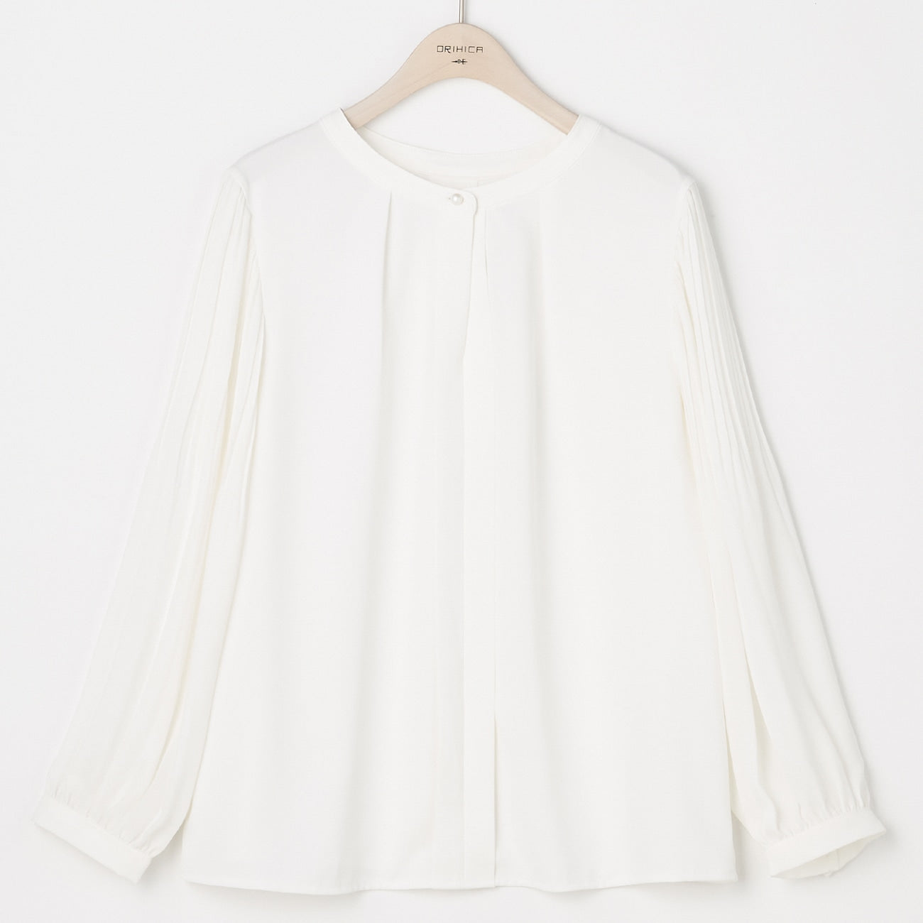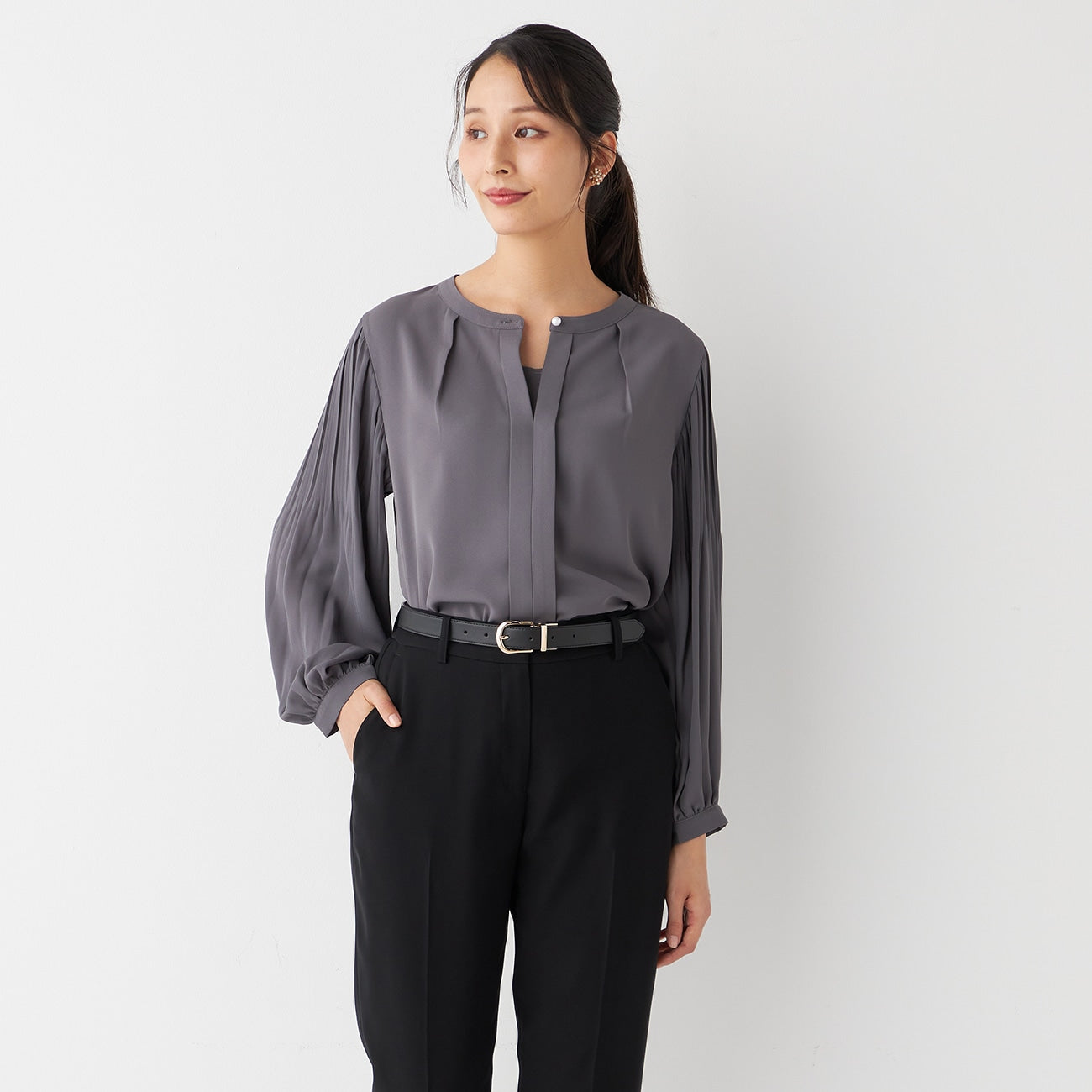 ・雪紡材質細摺袖帶出柔和氛圍,簡約上衣蘊含精緻細節。