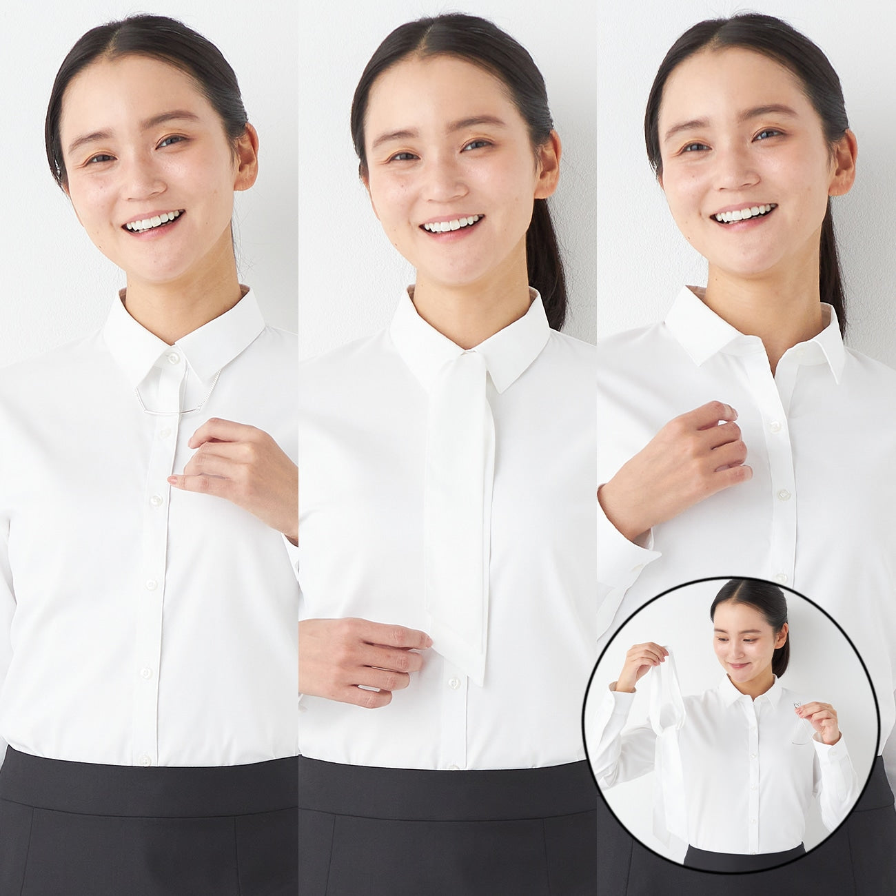 - 三種領型設計(點領、配飾領、領帶)。