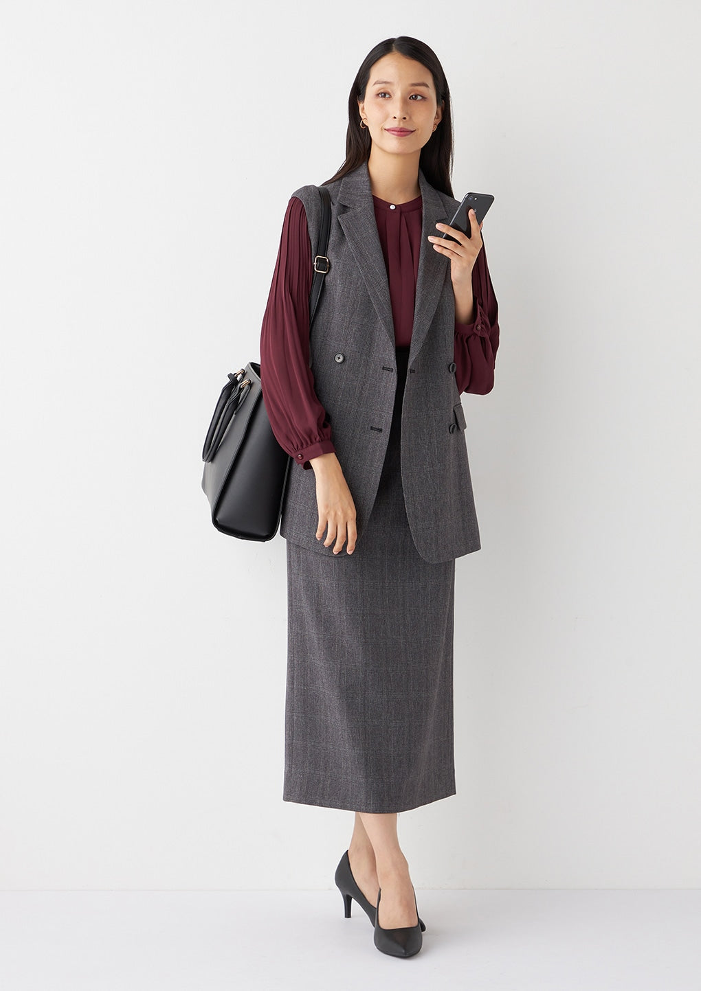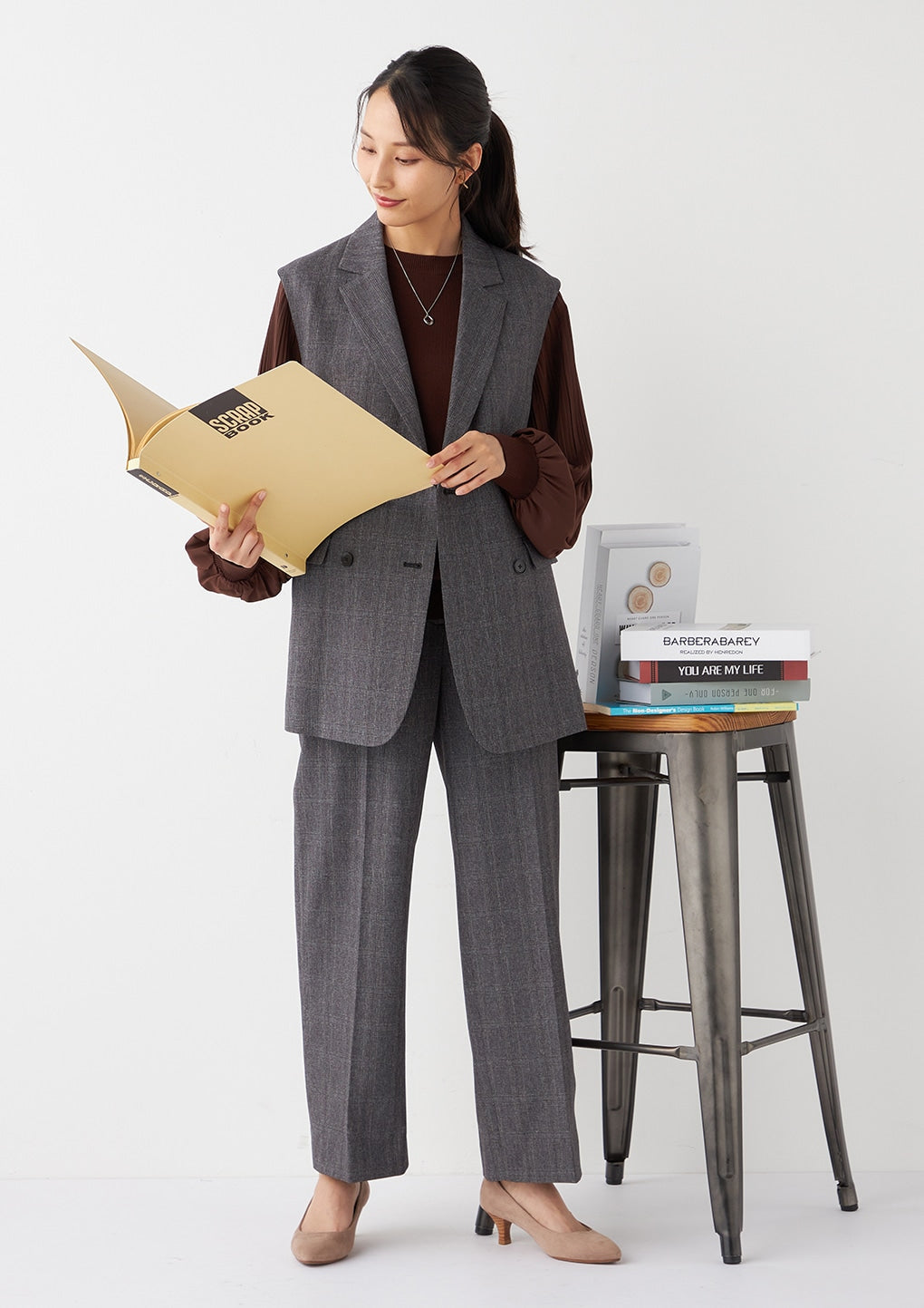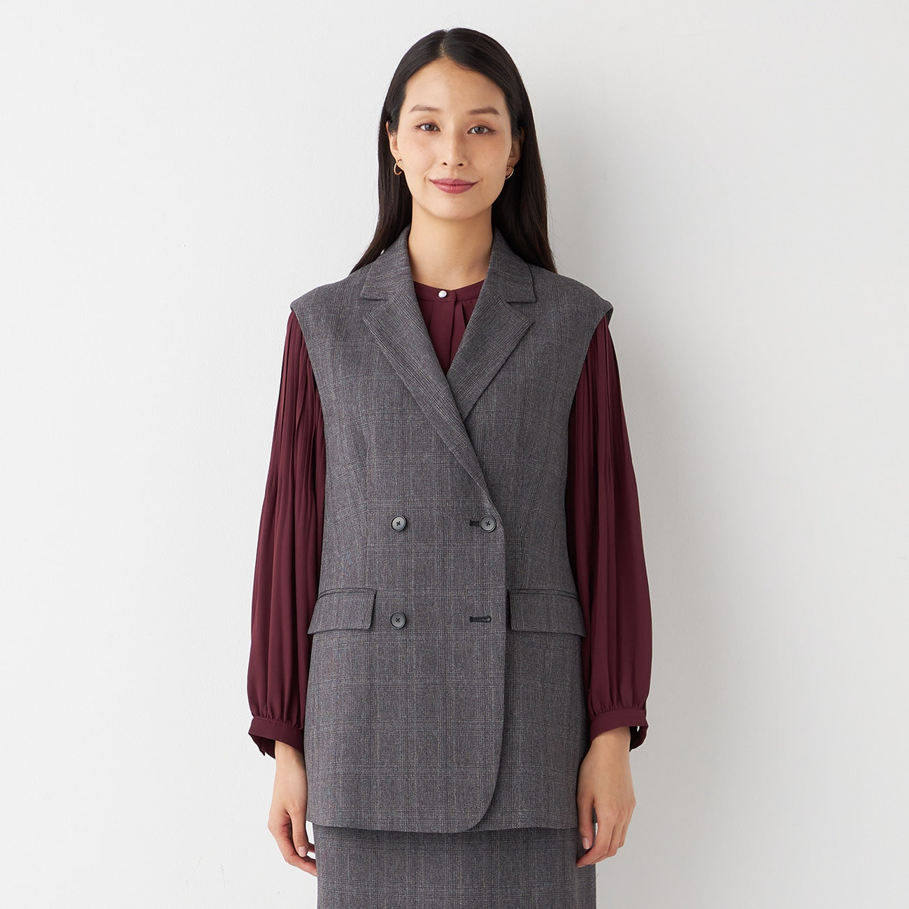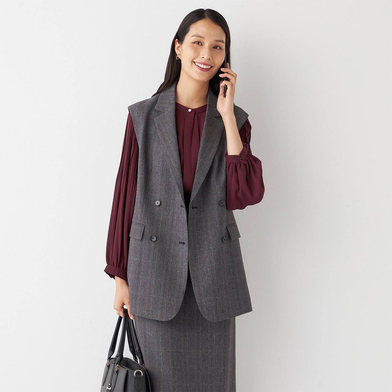 ・中長版西裝背心,近似羊毛的立體紋理打造獨特風格,亦能搭配多種色系。