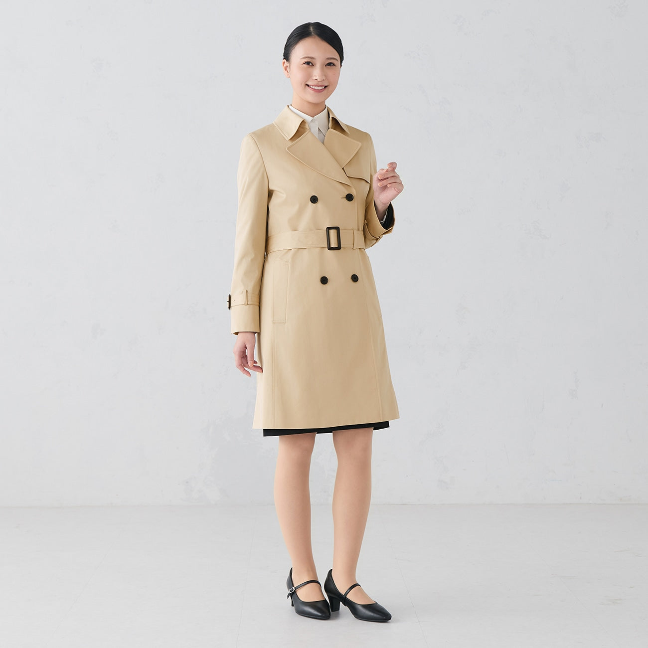 Creates a mature looseness by loosening the waist squeeze dare. The collar is designed to be moderately large, expecting a happy small face effect. Placing the front 6 buttons at a high position guides the eyes upward, naturally fulfilling leg-lengthening and style-up effects.