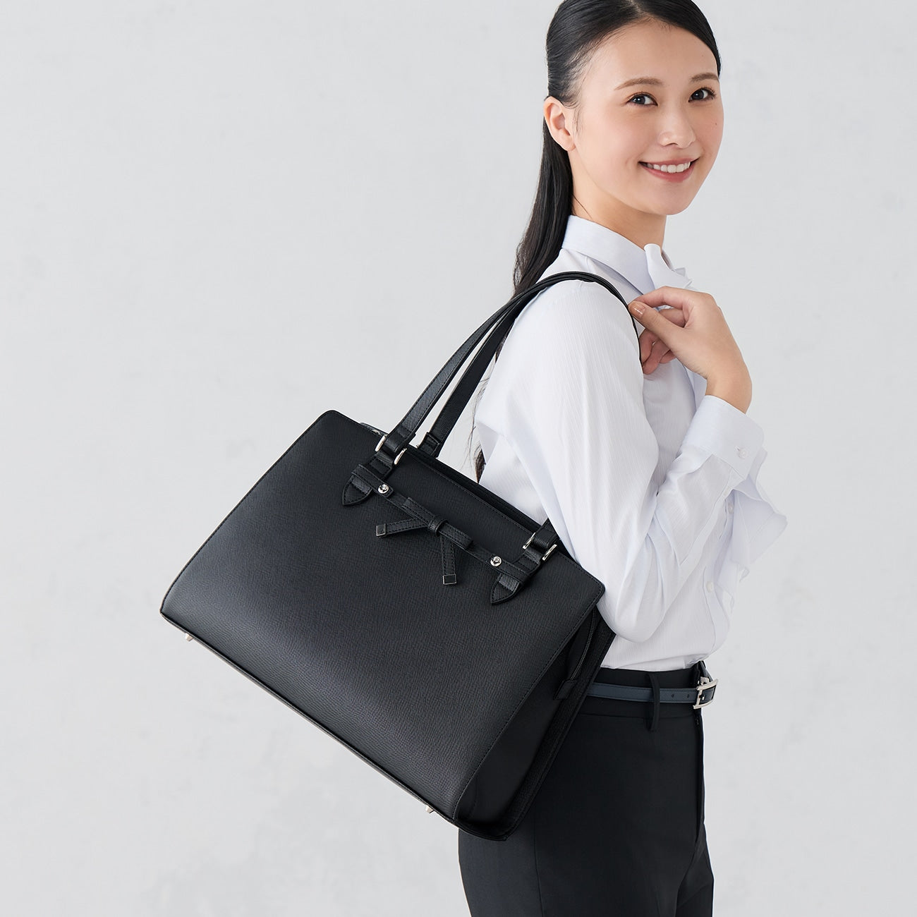 表面防潑水塗層,突然下雨也能應對。底部設置自立扣,不怕包包一放就倒。容量大,筆電、A4文件等日常必備品輕鬆收納。