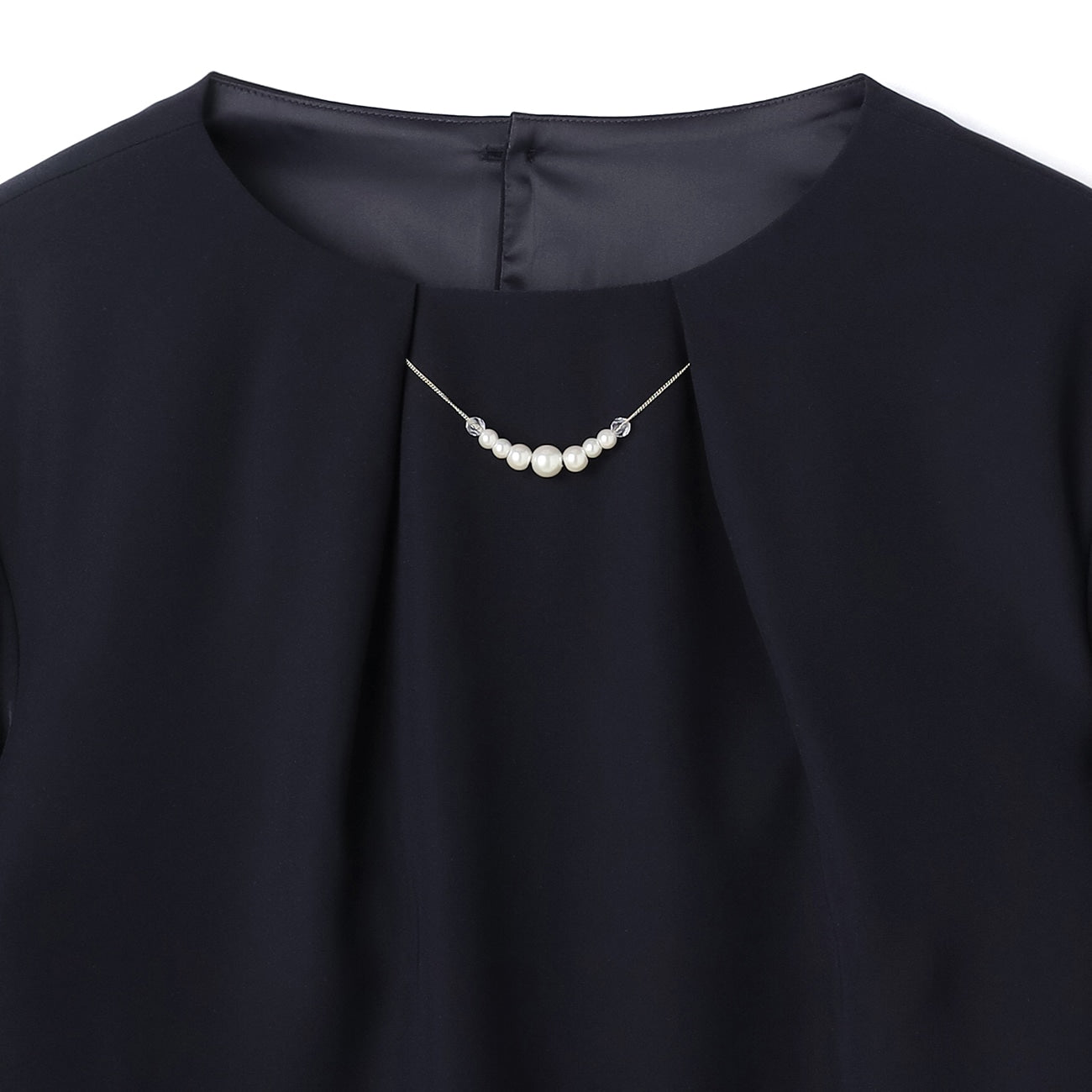 特點是胸前的客製化配件,細節一絲不苟,不戴項鍊也能打造迷人造型。取下即可穿著百搭簡潔的上衣。