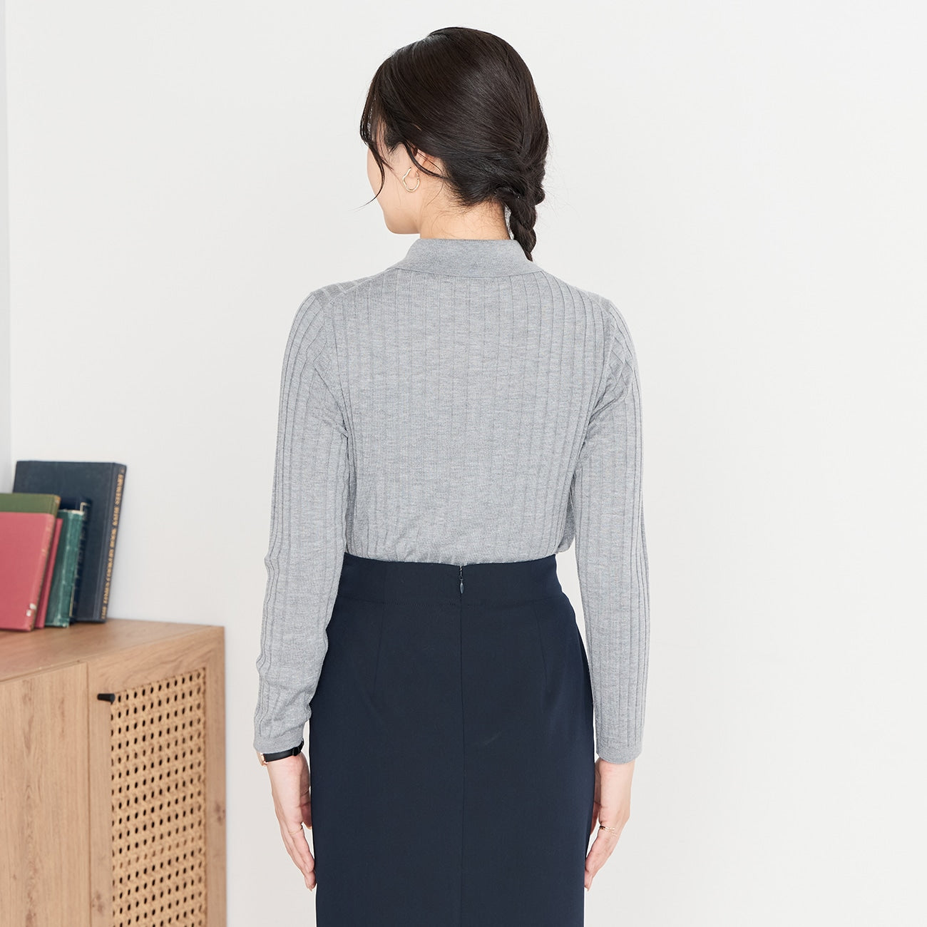 使用半梳毛羊毛,蓬鬆柔軟,混紡絲線增添些許光澤。立體剪裁適度修身,穿著不緊繃。