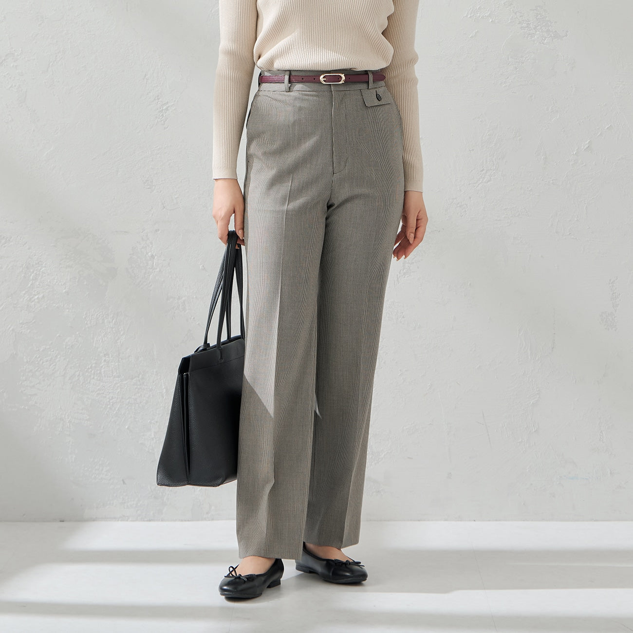 穿著舒適喇叭褲,搭配水洗彈性布料