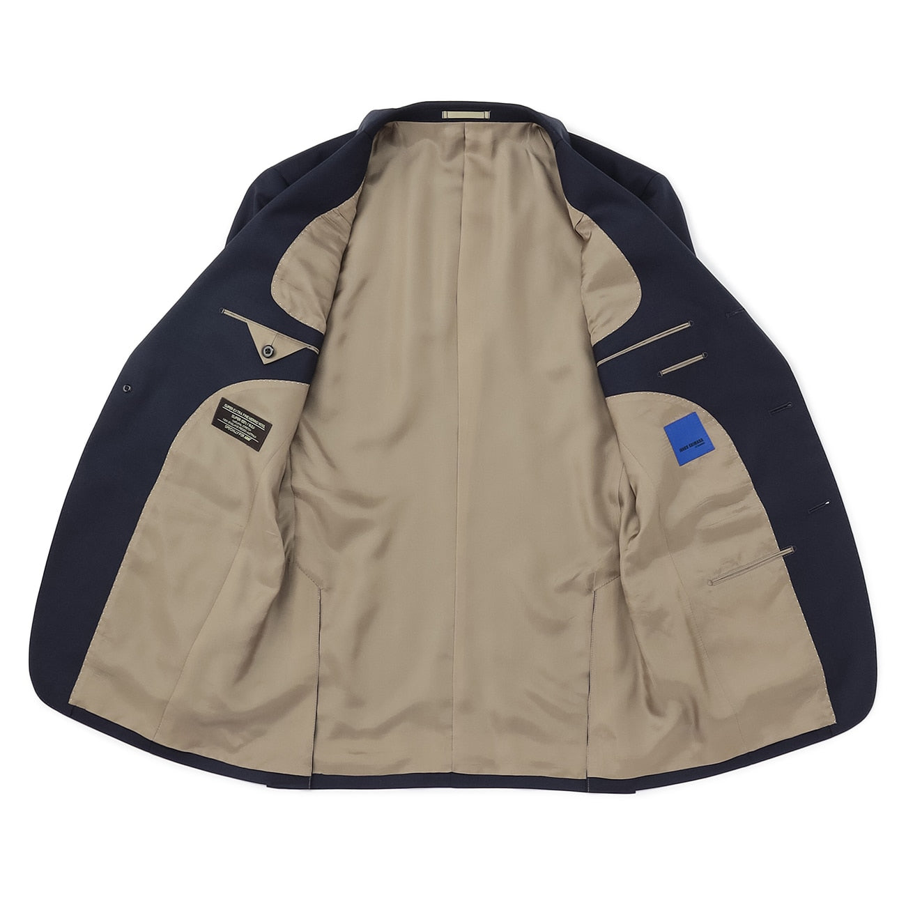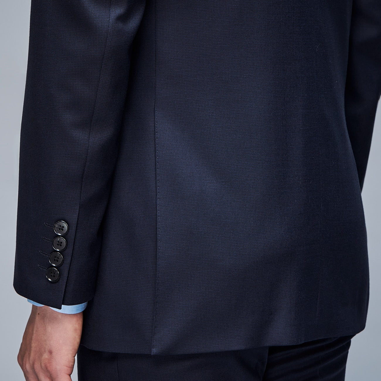 西裝外套:3扣2(3-roll-2)、雙開衩、全內裏、AMF縫線、多個口袋。