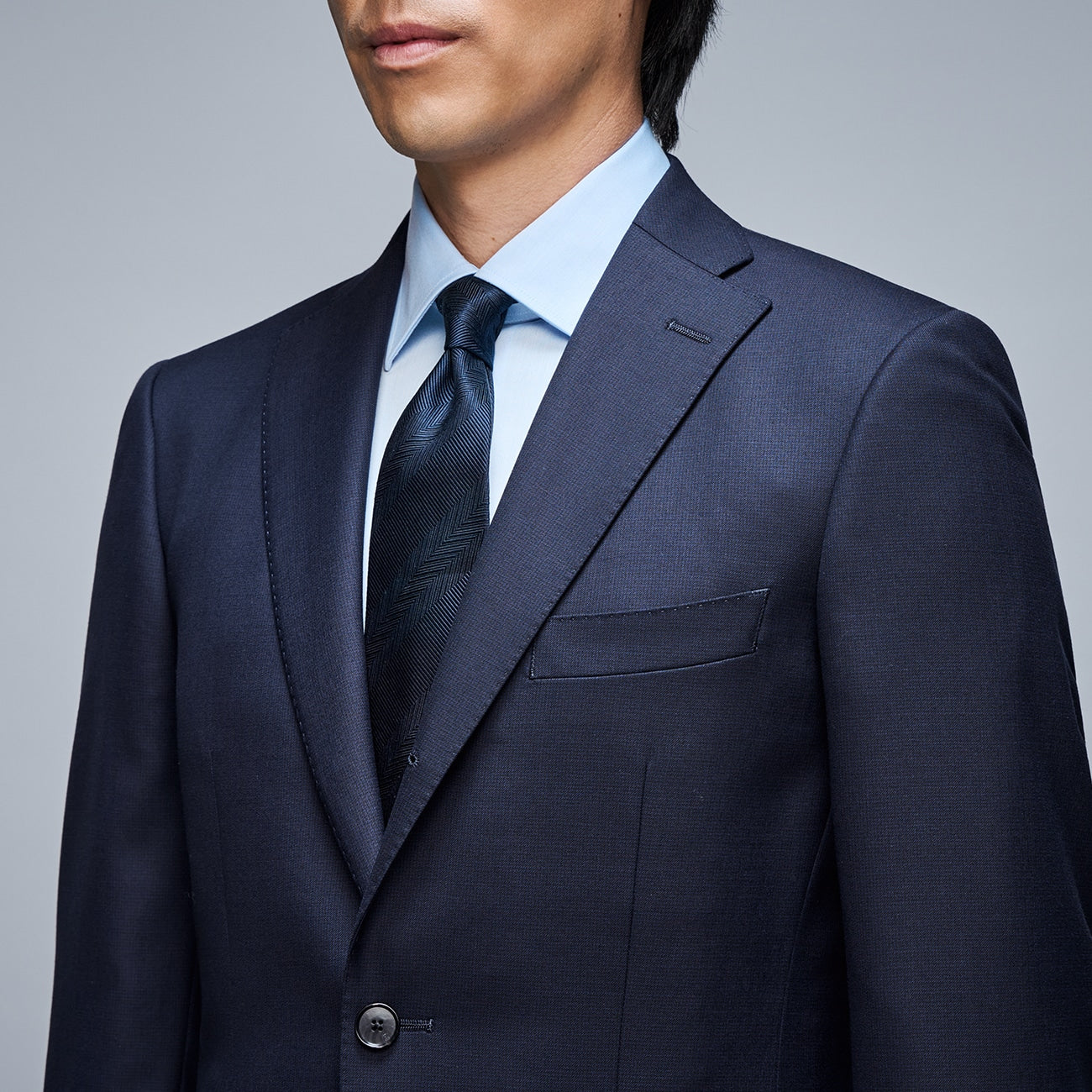 透過AOKI的獨家處理,讓西裝布料能發揮最完美的光澤,成色鮮明而不過於搶眼,呈現洗鍊的成熟風格。