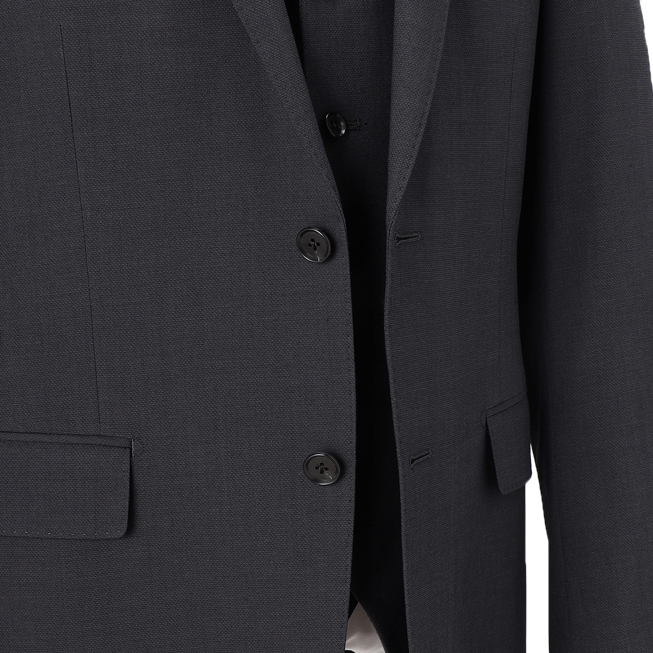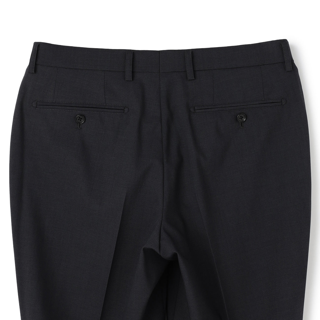 西裝外套肩膀略呈圓弧線條,穿著輕鬆不拘束。肩寬適中、腰部略為收窄,打造出自然立體身形。西裝褲為低腰錐形設計,腰圍不緊繃、錐形剪裁更有修飾腿型效果。