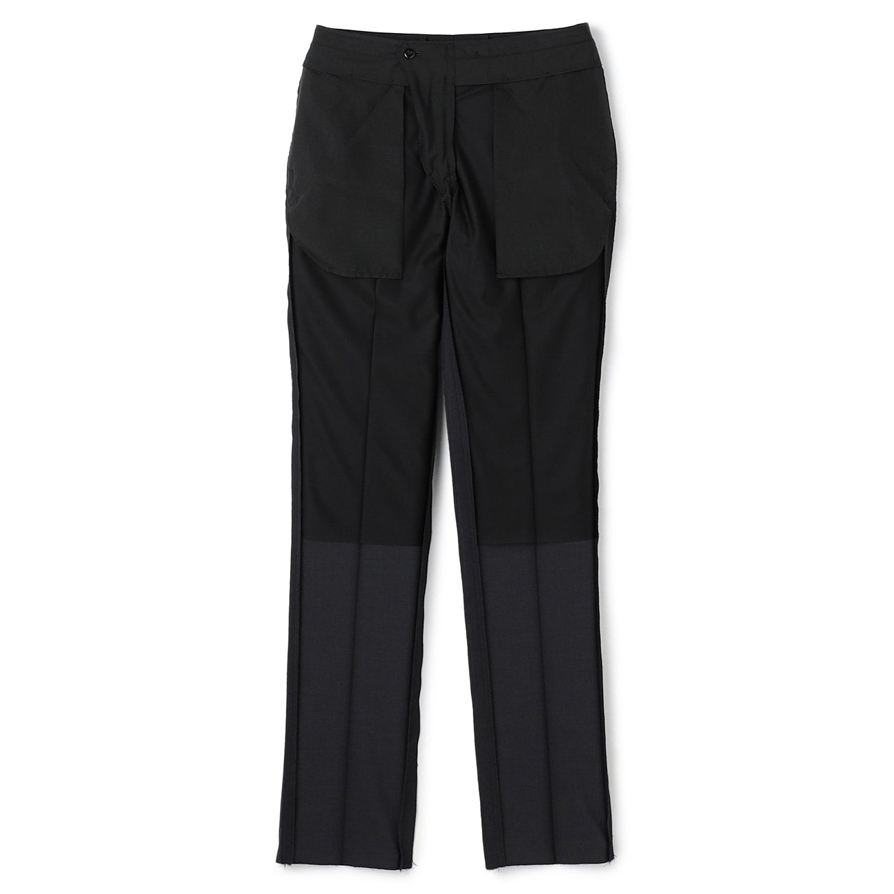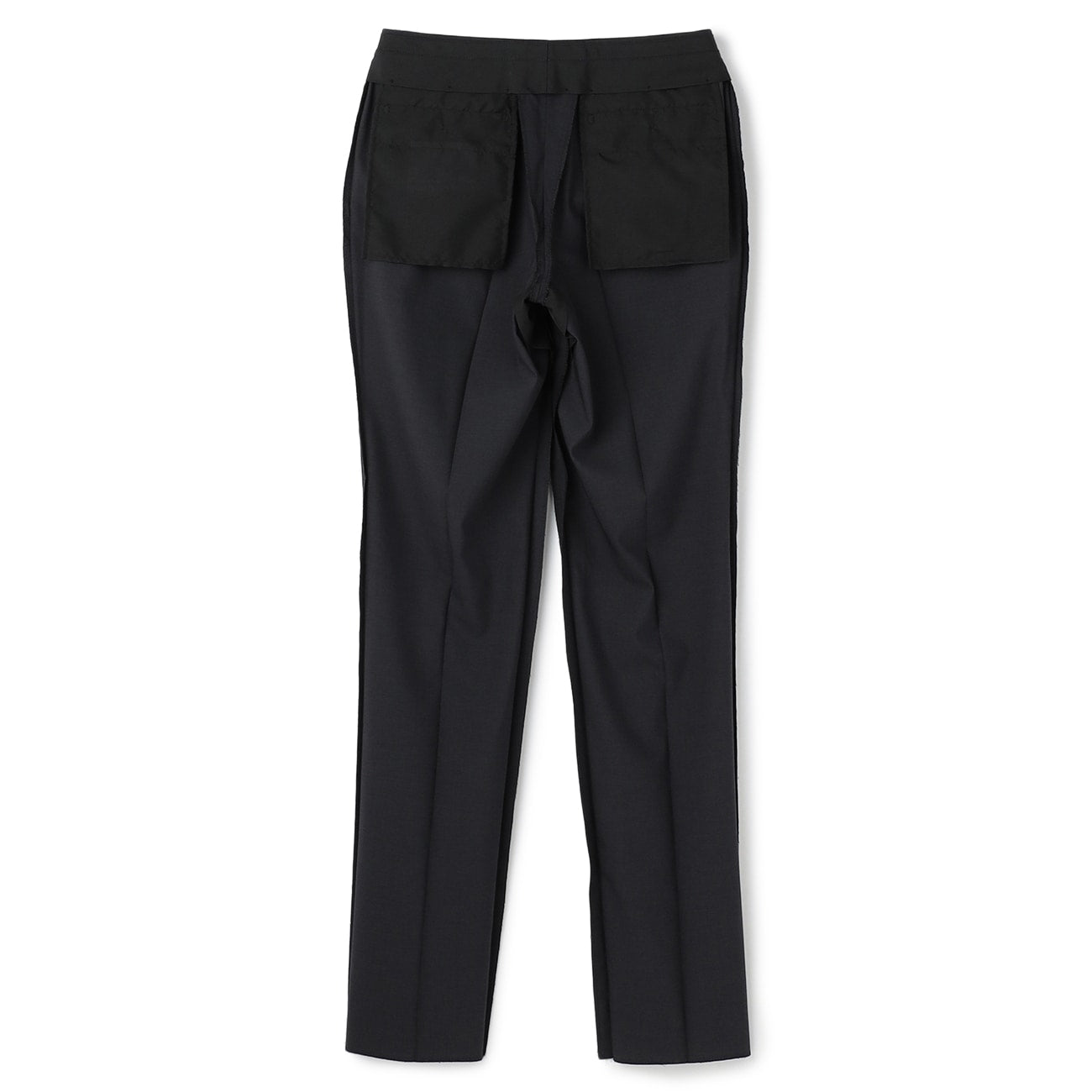 聚酯纖維和羊毛混紡,讓布料既有羊毛的柔軟與質感,也具備聚酯纖維的彈性機能。修身錐形褲型,呈現優雅輪廓。
