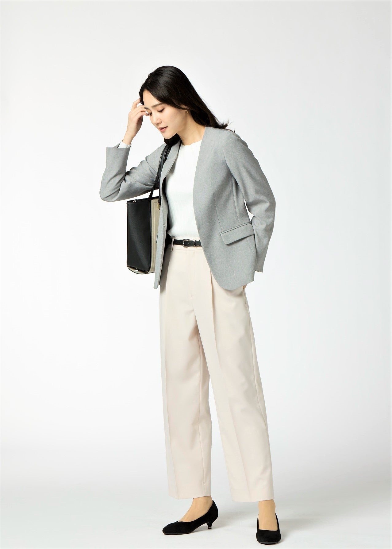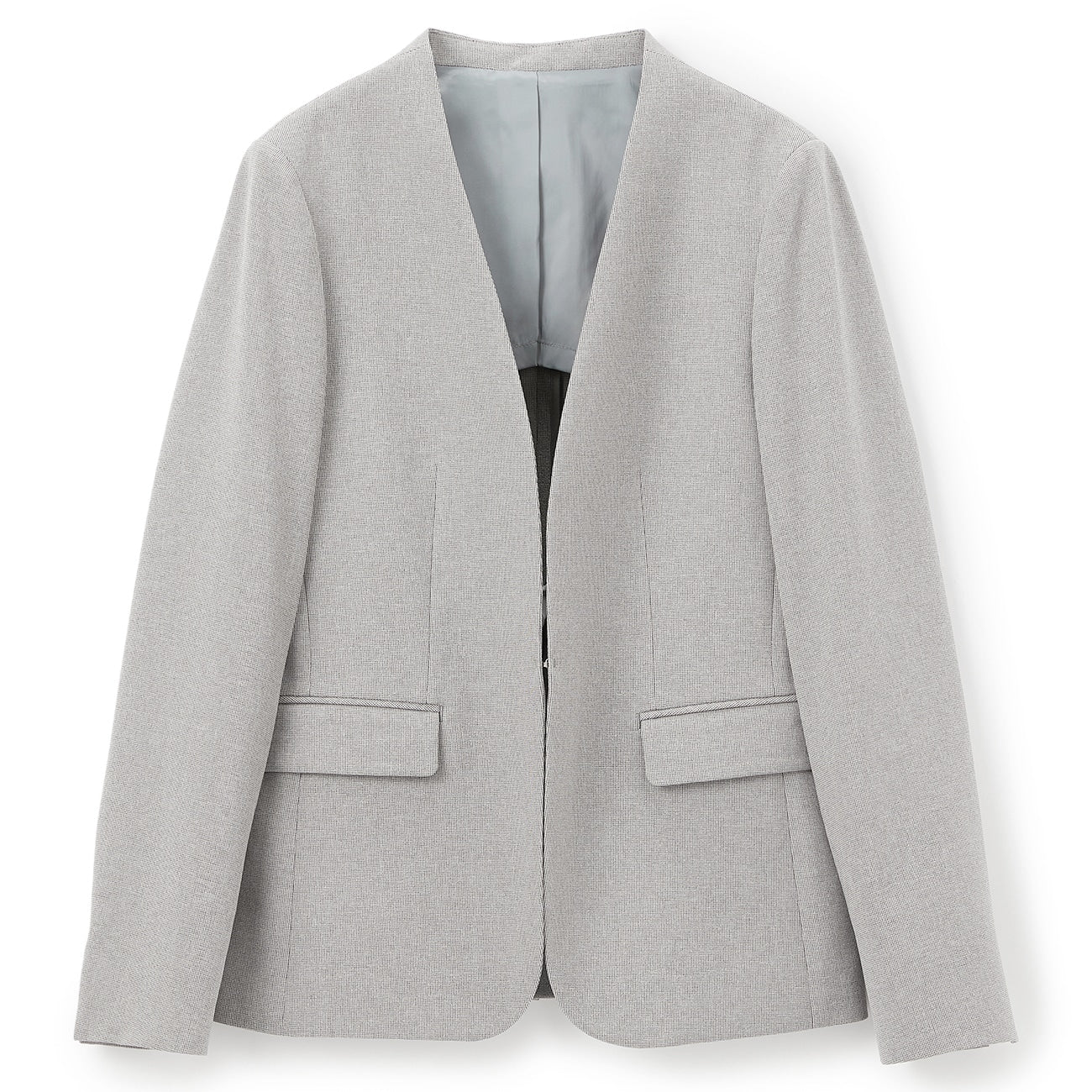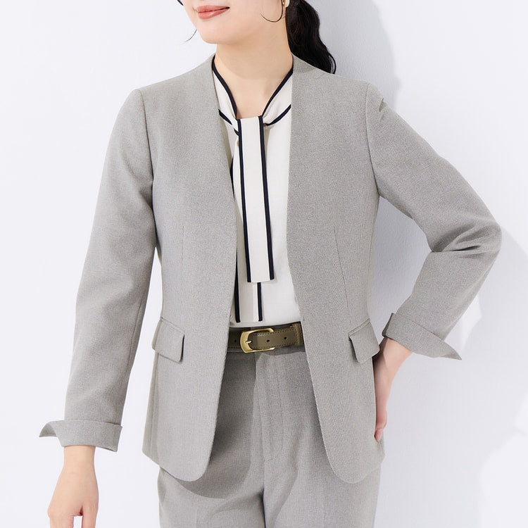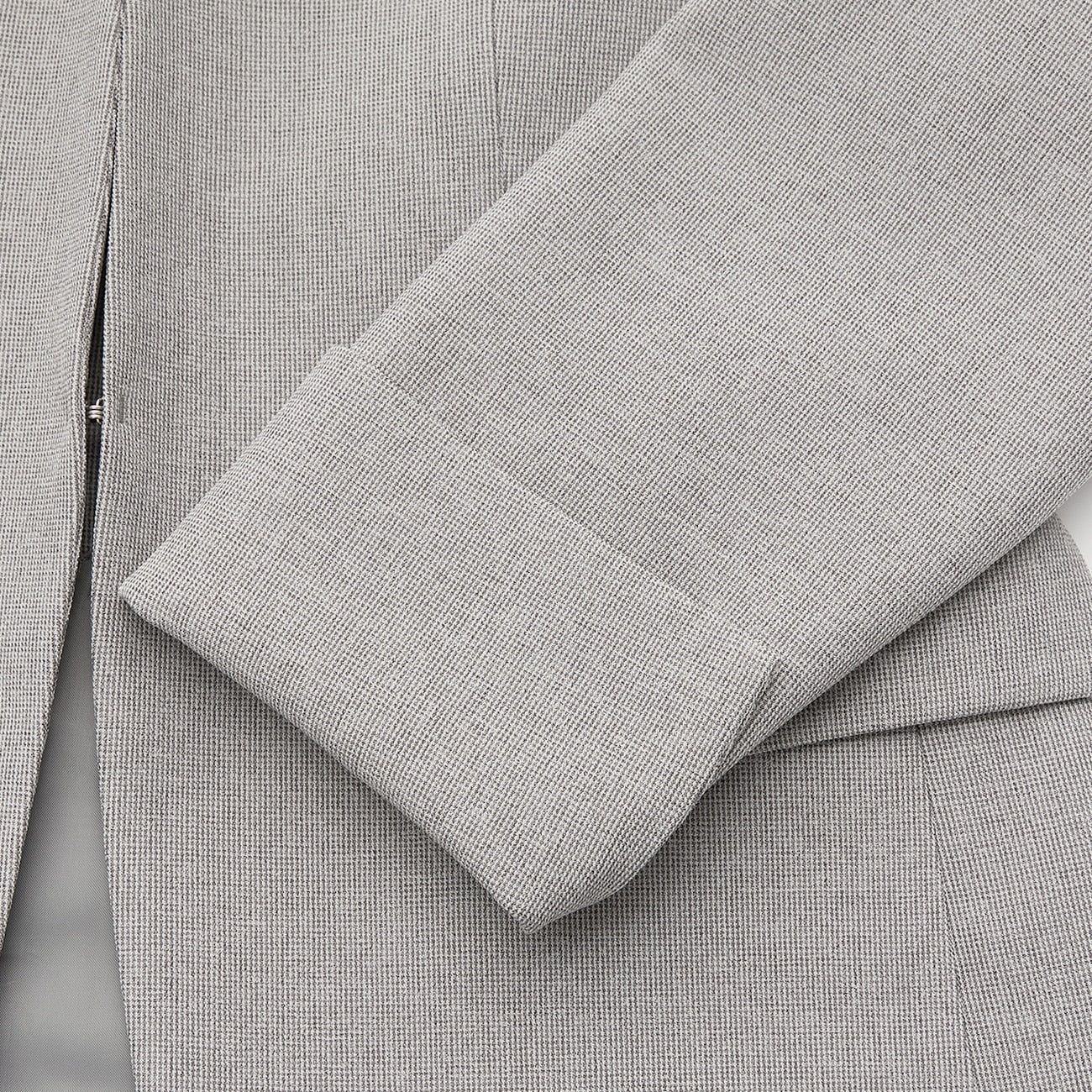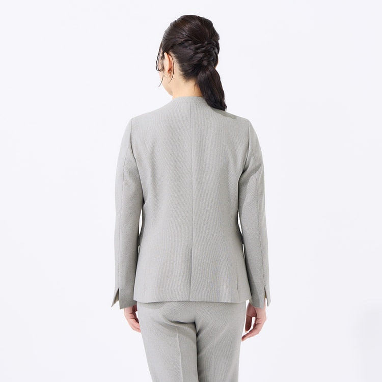 The clean-cut collarless neckline creates a sleek look that pairs perfectly with T-shirts for a refined office-casual style or with blouses for an elegant ceremony, offering endless styling options.