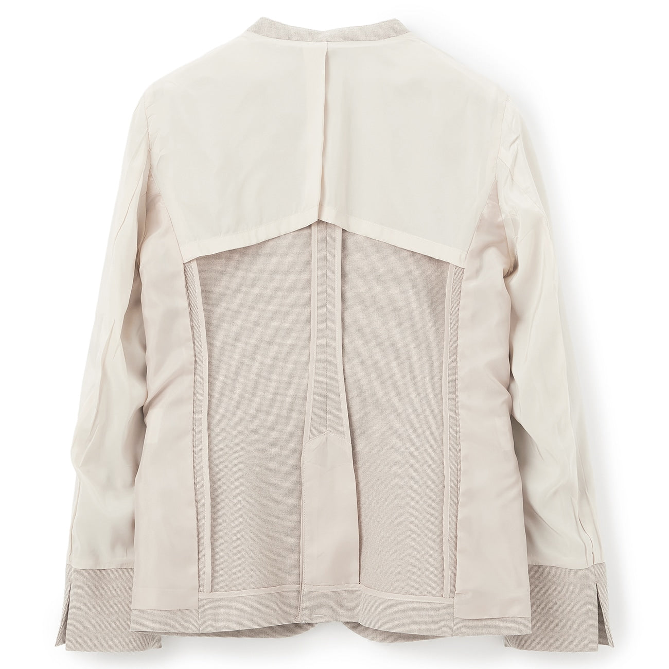 混色紗彈力無領西裝外套 米