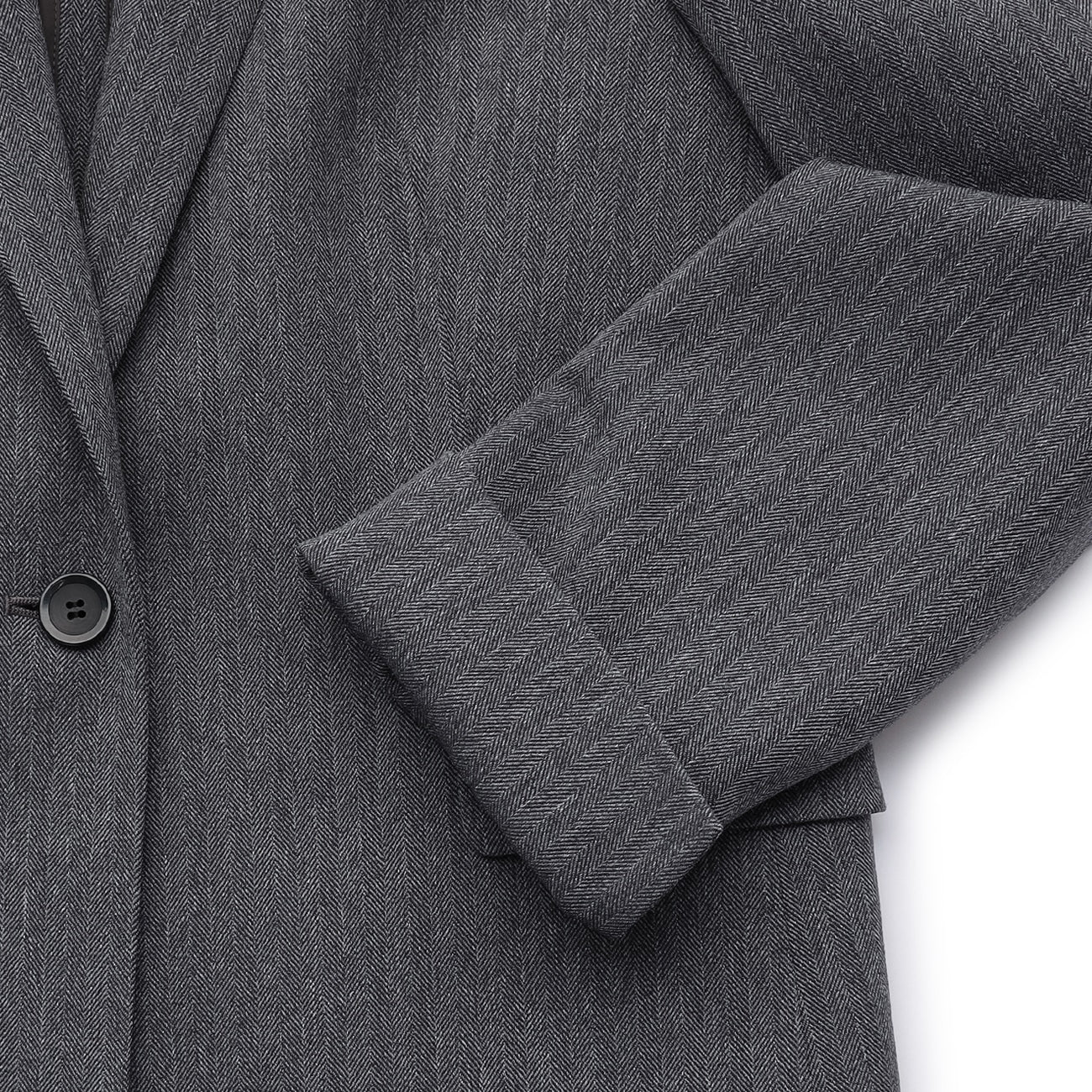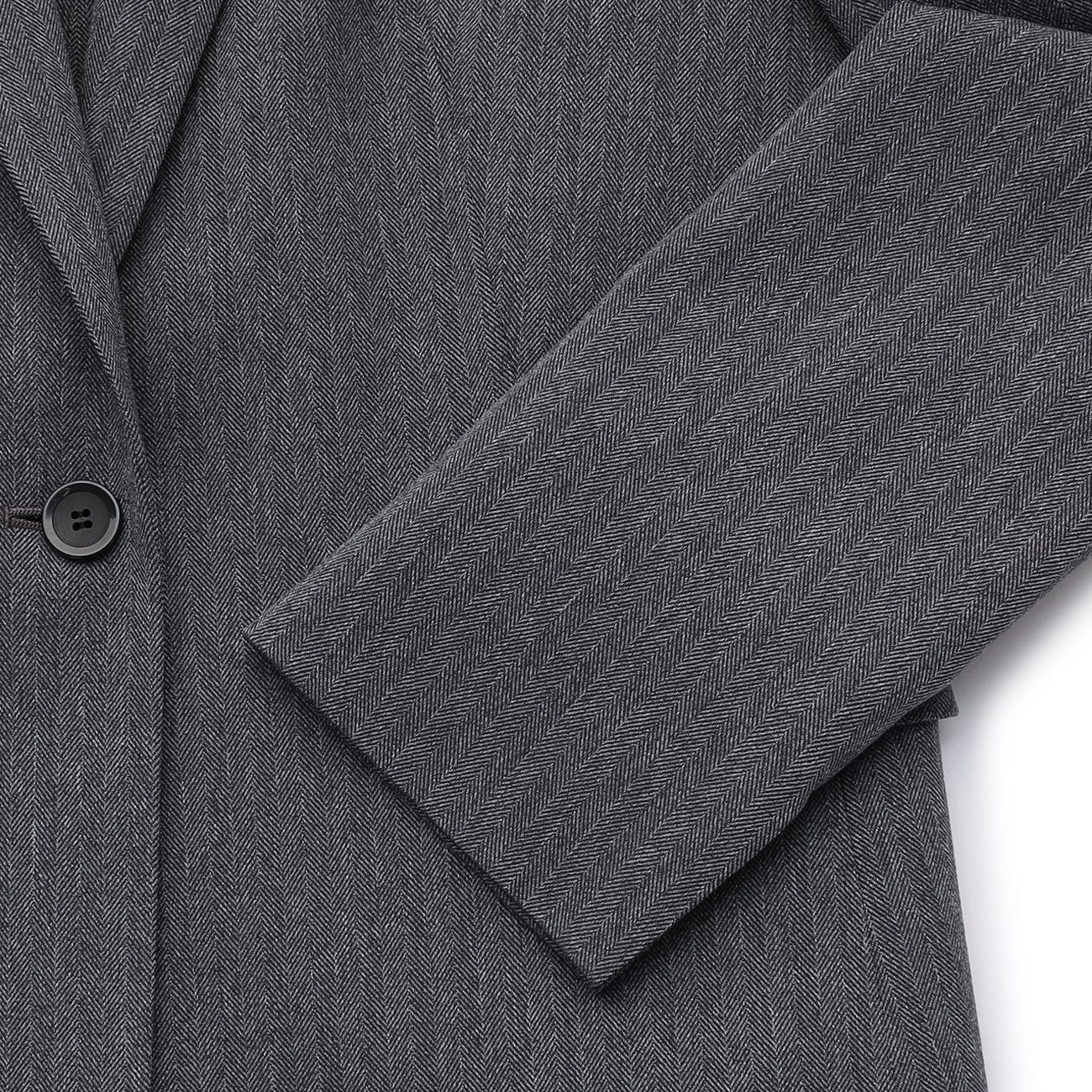 遮蓋臀部的加長版型,提供令人安心的輪廓。採用仿毛花呢風格的人字形布料,打造優雅的秋冬造型。