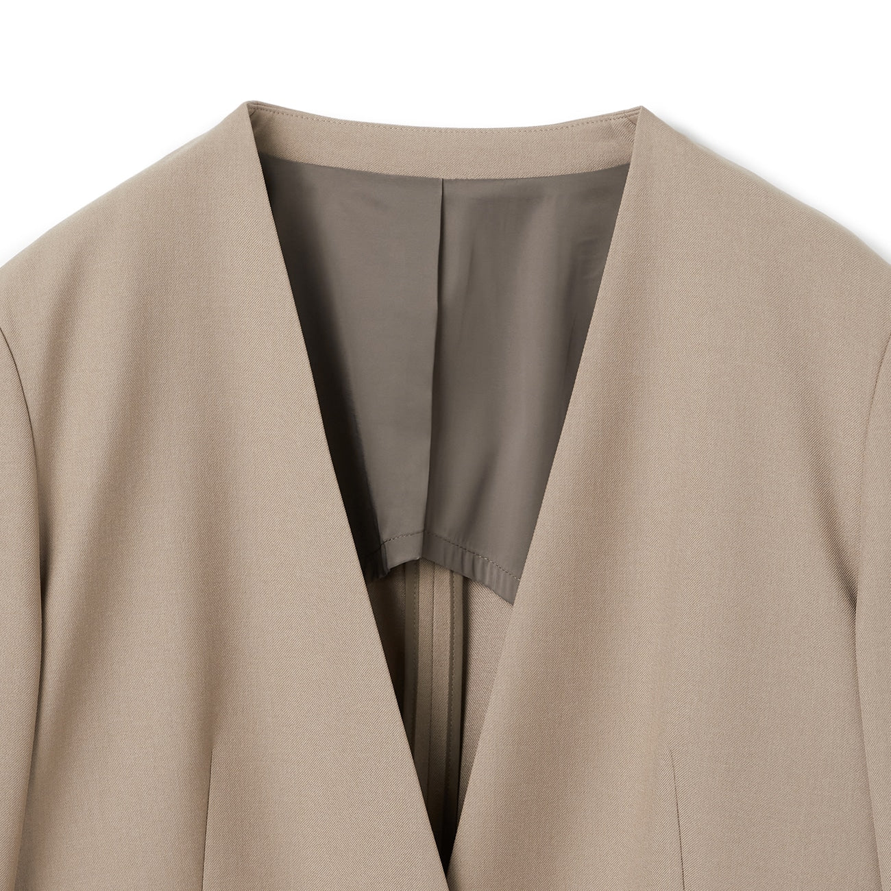彈性亮面斜紋無領外套 駝色