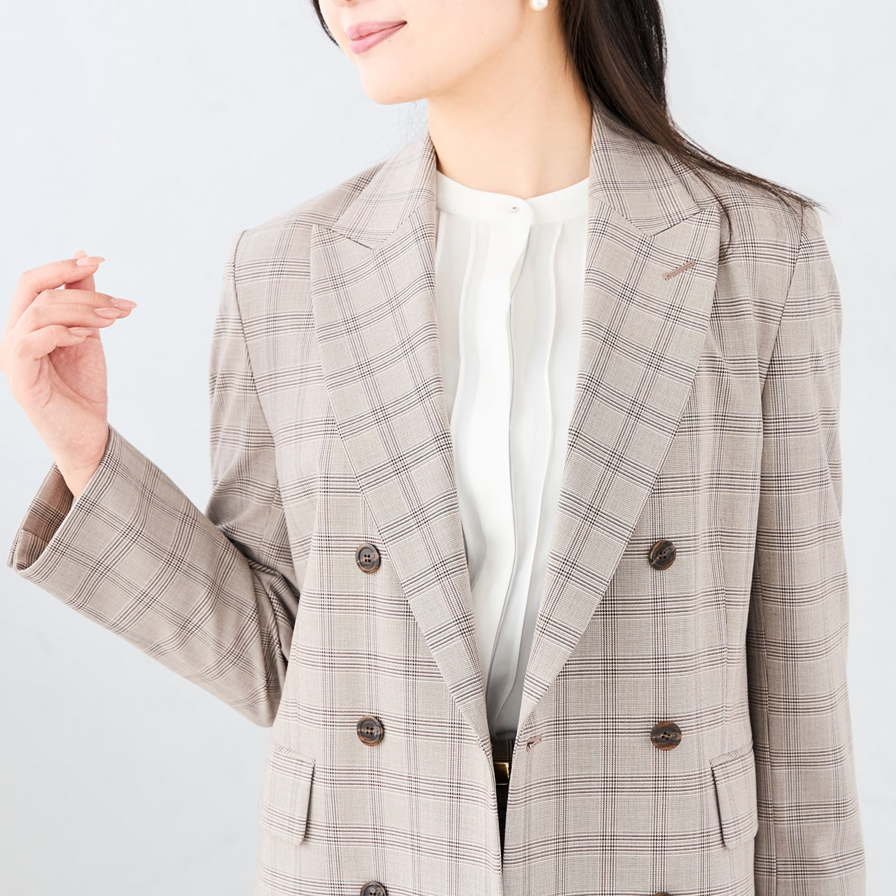 此面料具備適度光澤,即使在正式場合亦顯出眾風采。作為高規格材質,其外觀清爽且兼具四大功能:可水洗、具彈性、防皺 抗UV。即使長時間穿著仍能保持平整,居家保養亦十分簡便。