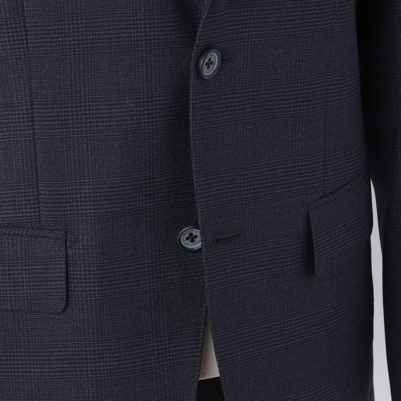三褶兩鈕扣、側開衩、半裡襯