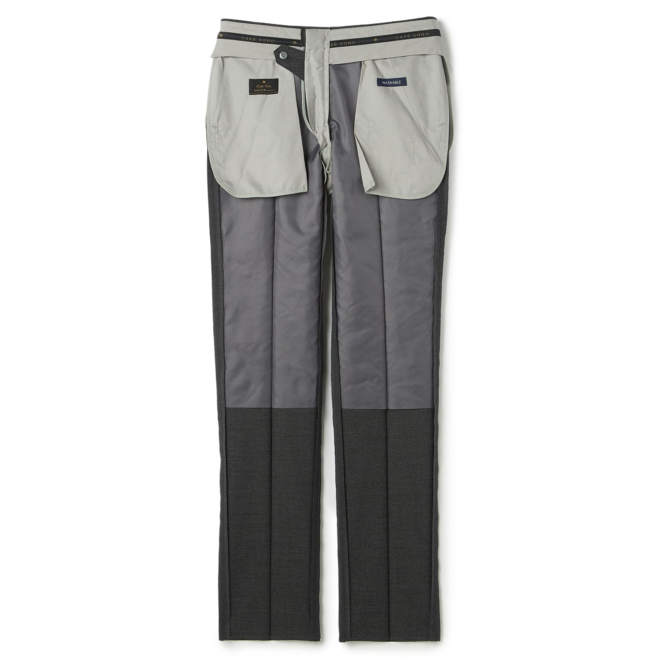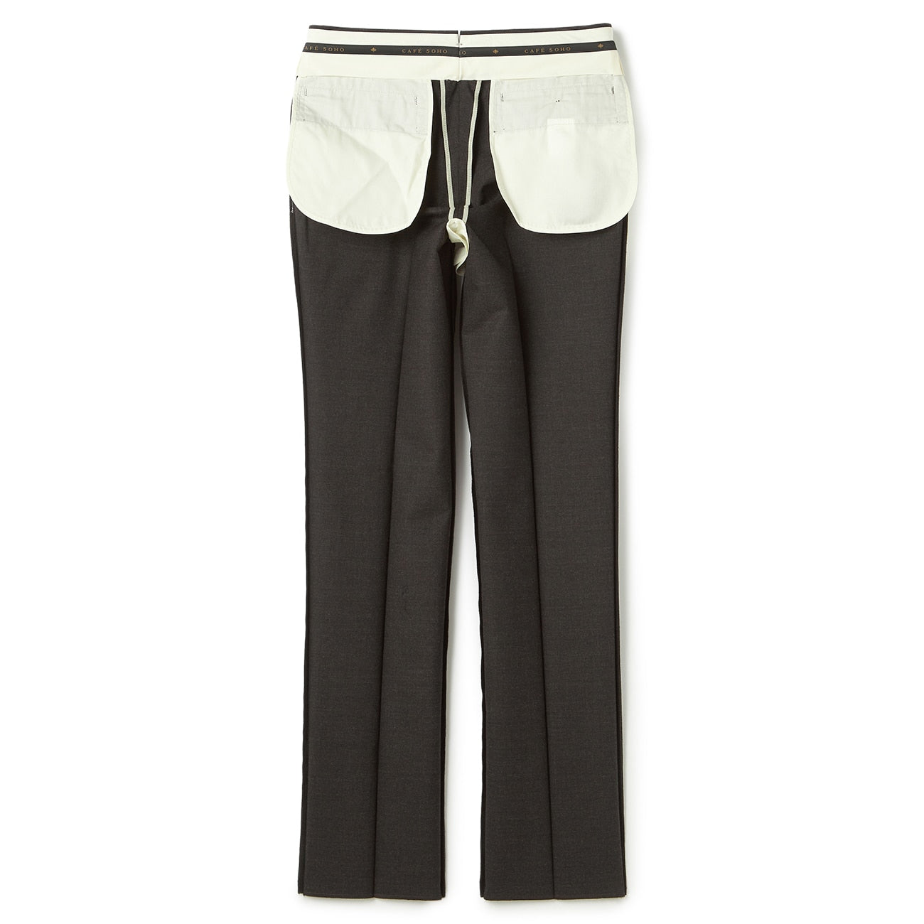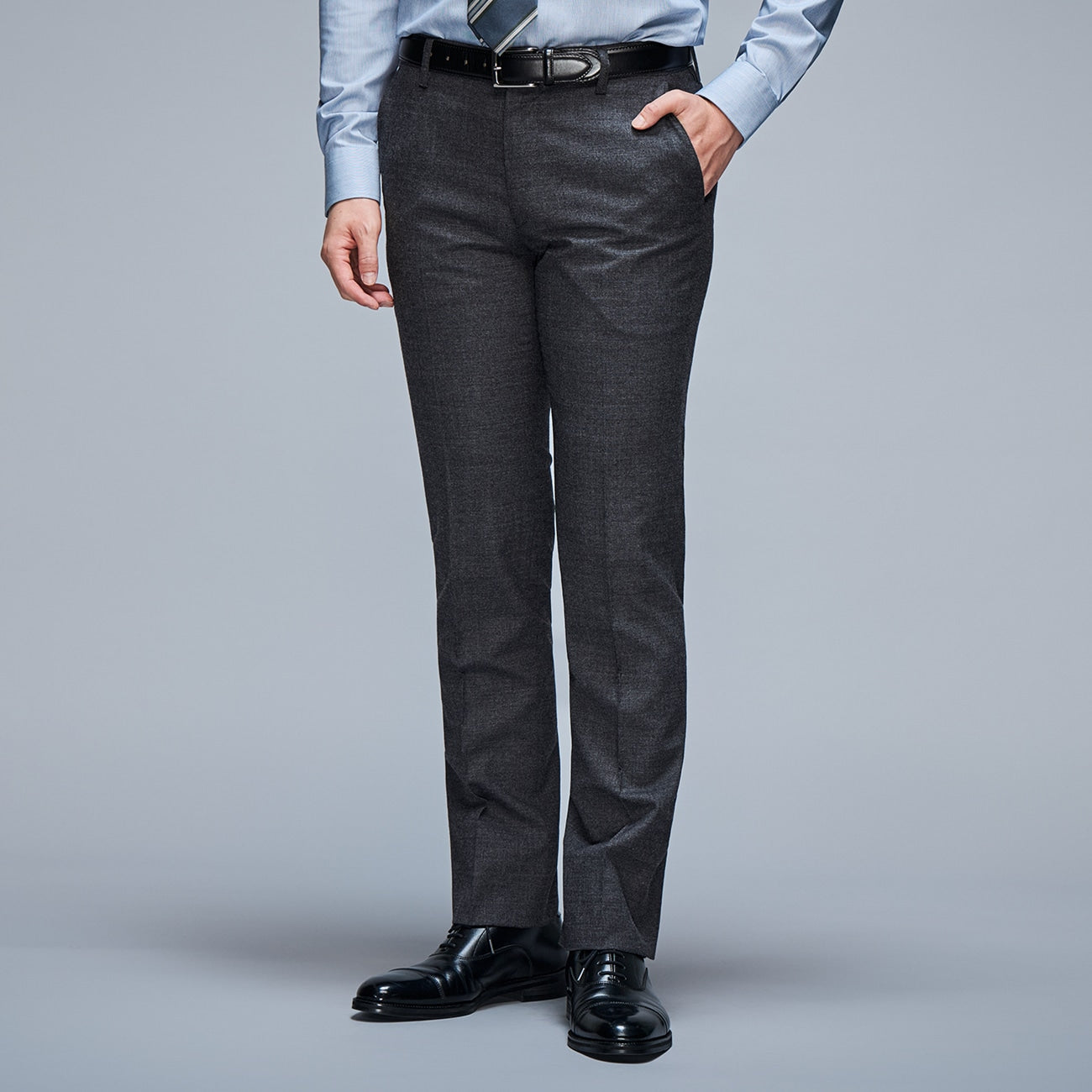 無摺西裝褲、腰部內側防滑設計、腰圍伸縮扣(可伸縮1.5公分)、右口袋內有零錢袋