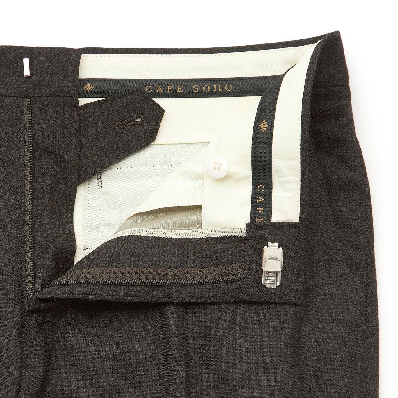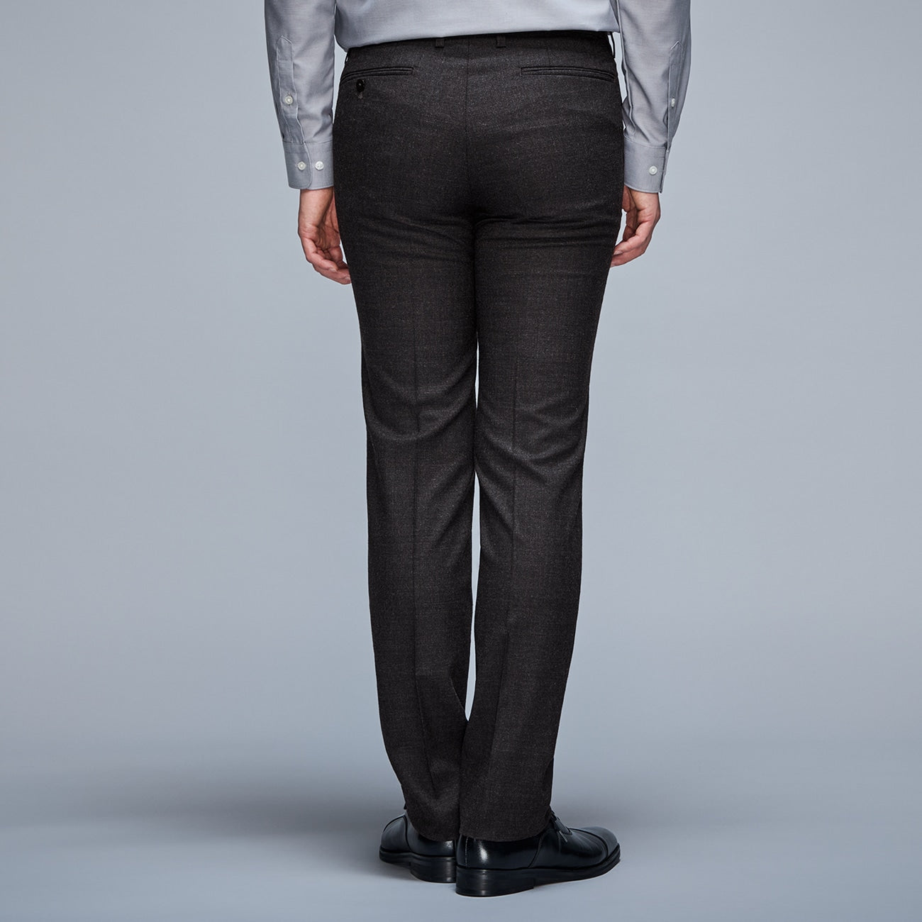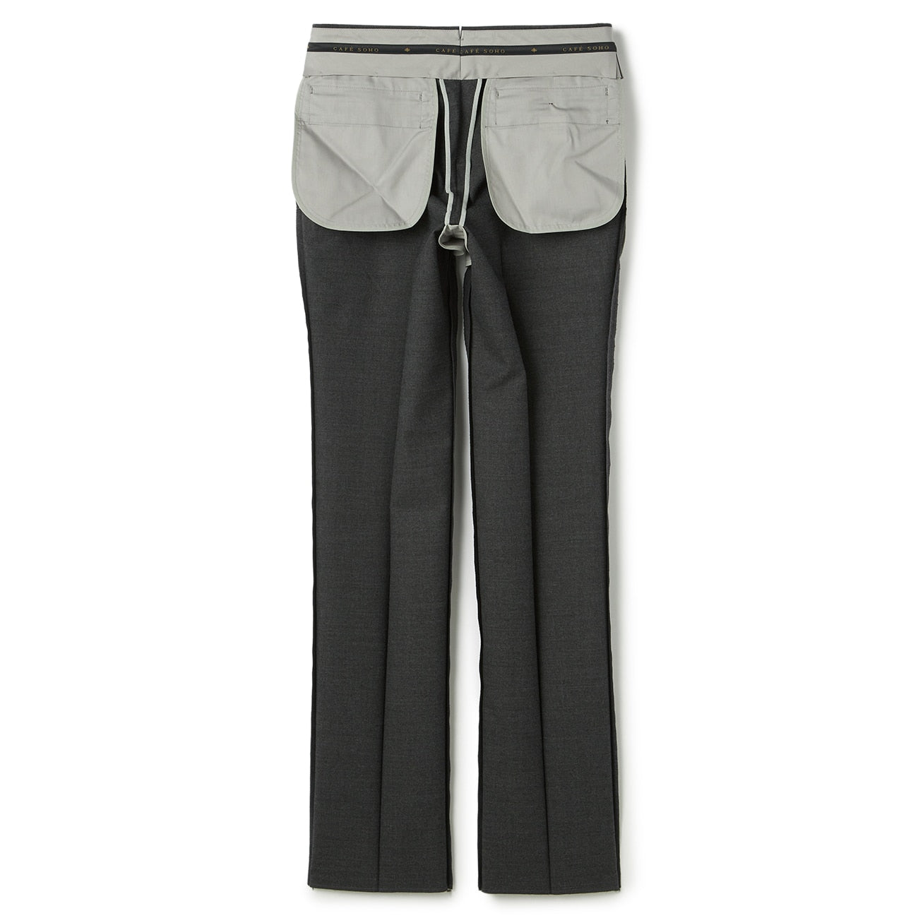 無摺西裝褲、腰部內側防滑設計、腰圍伸縮扣(可伸縮1.5公分)、右口袋內有零錢袋