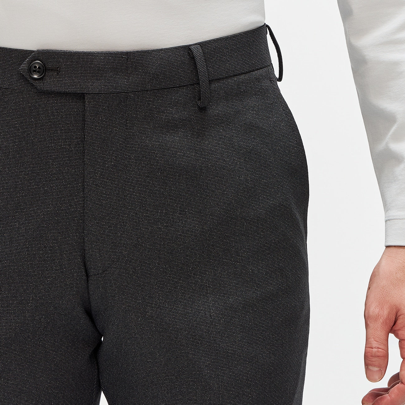 整齊的平口剪裁,不會過於修身。使用類似羊毛的柔軟聚酯材質,具有高彈性、輕量特性和抗皺性質,讓這款褲子舒適、易於打理,而且用途廣泛。