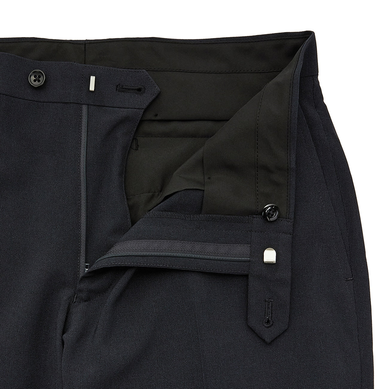 Tapered, flat front, slim fit