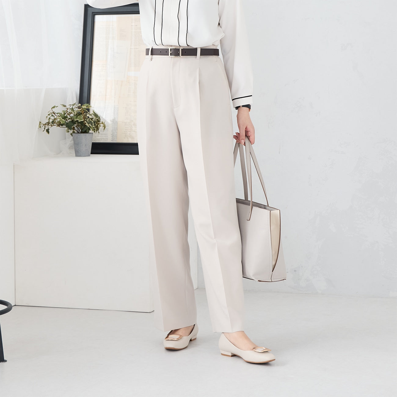 - 單褶設計打造筆直外觀