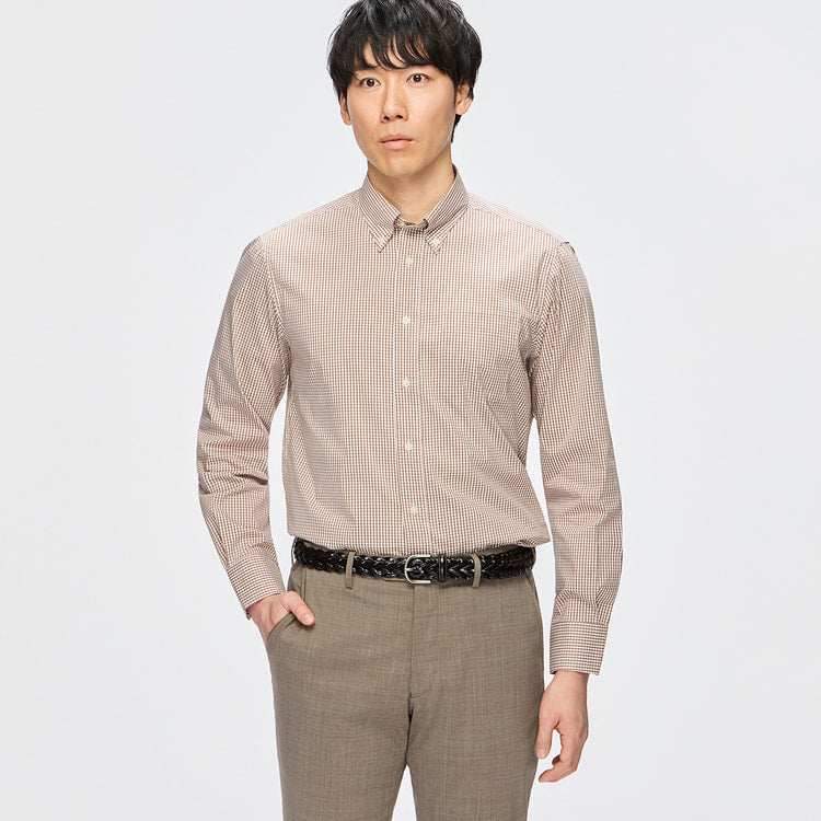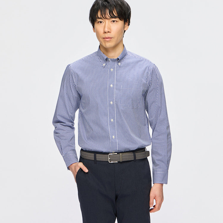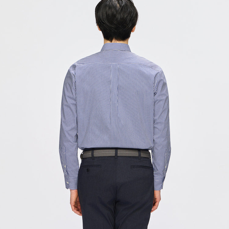 领口与衣身前侧使用柔软衬芯,略宽版型好活动,衬衫衣长精心计算,扎与不扎都有型。混纺布料让衬衫具挺度,同时肤触干爽,不易闷热黏腻,春夏舒适首选。