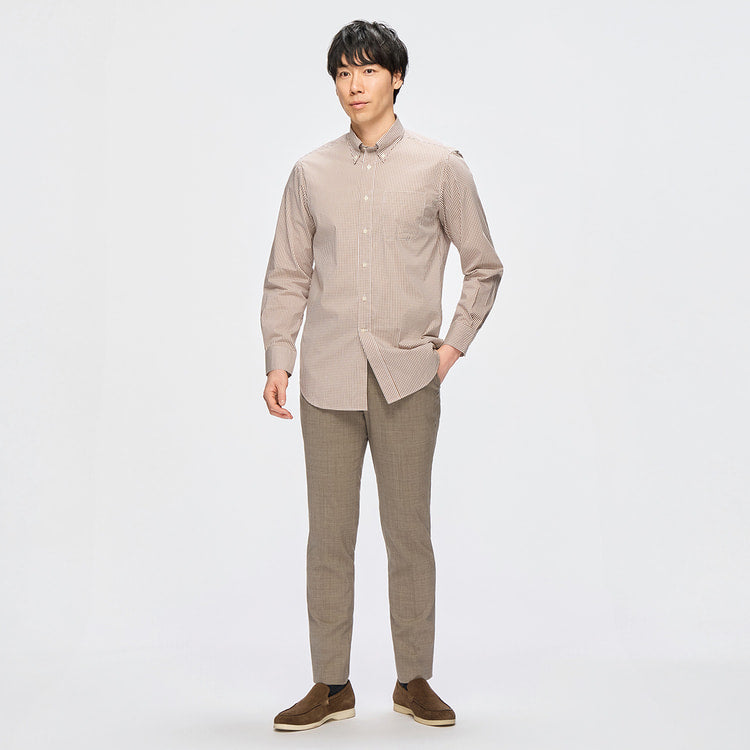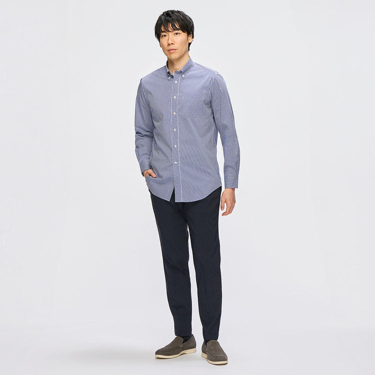 領口與衣身前側使用柔軟襯芯,略寬版型好活動,襯衫衣長精心計算,紮與不紮都有型。混紡布料讓襯衫具挺度,同時膚觸乾爽,不易悶熱黏膩,春夏舒適首選。