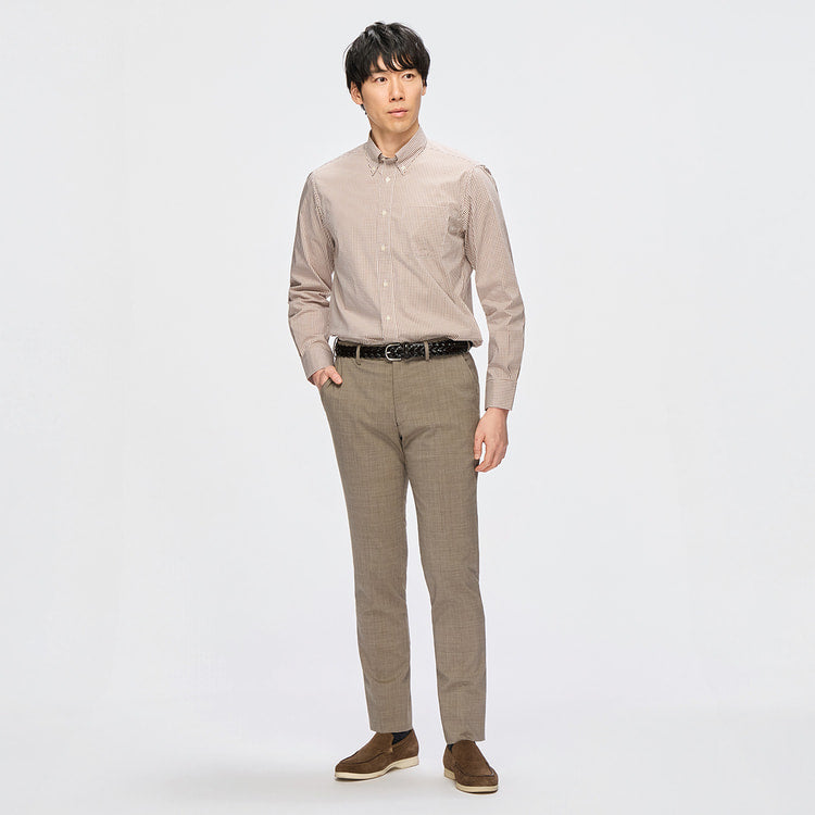 A cotton, nylon, and polyurethane blend provides a crisp touch, breathability, and flexible stretch—ideal for spring and summer wear.